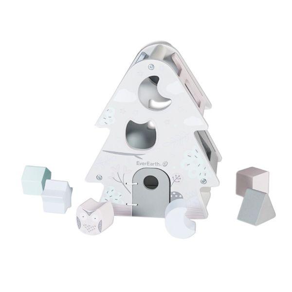 Vem com 9 cubos de madeira diferentes nas cores pastel mais queridas e apresenta companheiros dourados da floresta, como uma coruja, uma raposa e um urso. A coordenação óculo-manual é estimulada pelas crianças, que colocam os diferentes cubos de madeira nas aberturas apropriadas. A árvore possui uma prática pega de transporte, concebida especialmente para as mãos das crianças, sendo ideal para ser transportada por aí. Graças à bela combinação de cores pastel, causa uma impressão marcante não só na prateleira do quarto das crianças.