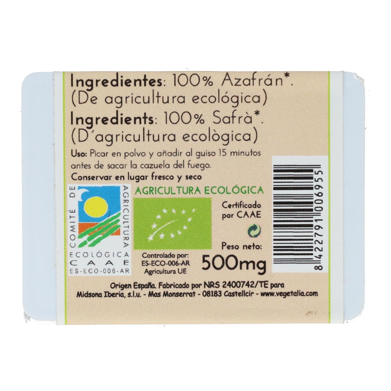Toda a informação sobre "Vegetalia Açafrão Biológico 0,5g"