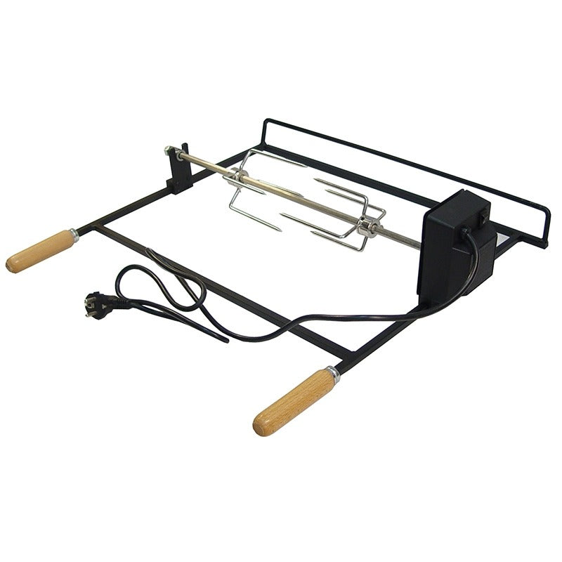 - A grelha em forma de V, ao estilo argentino, com cabos de madeira, canaliza a gordura para a frente, para que não pingue para o carvão.