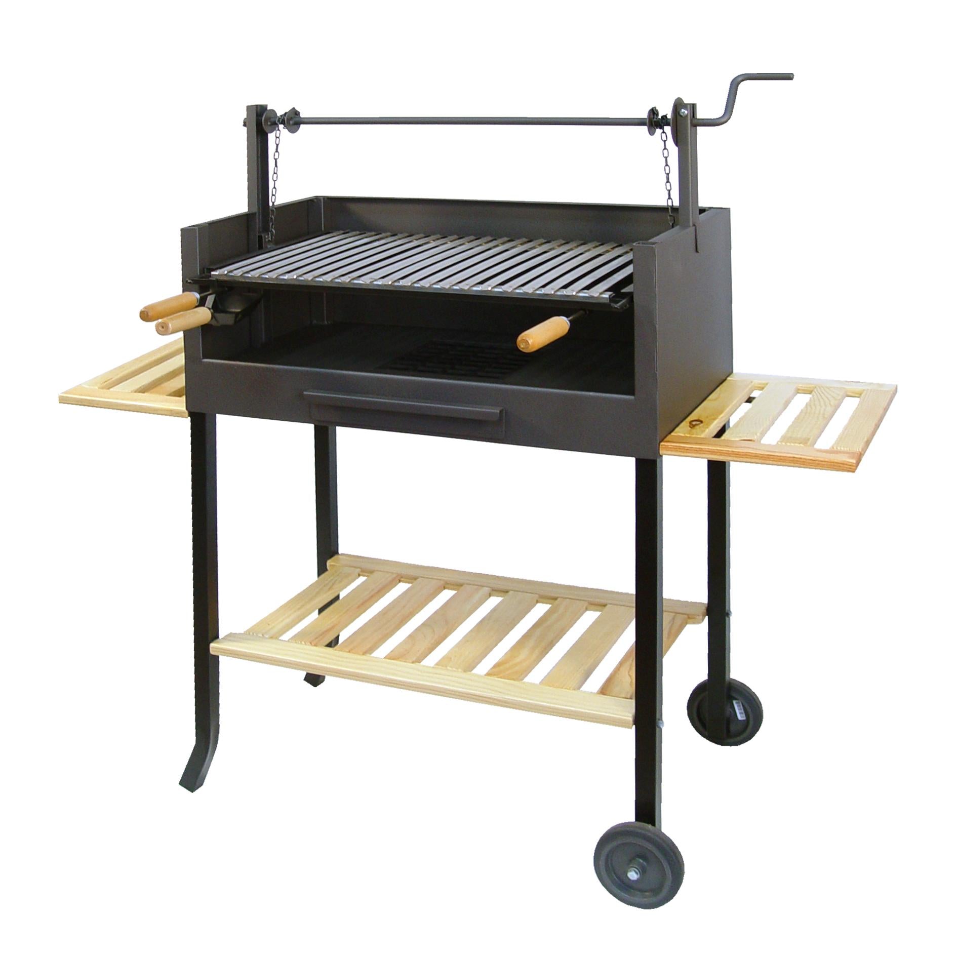 Churrasqueira com Rodas, Elevador, Grelha em Aço Inox e Tabuleiros em Madeira