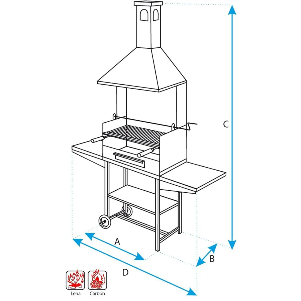 - Grelhador em ferro com chaminé, elevador e grelha em aço inoxidável.