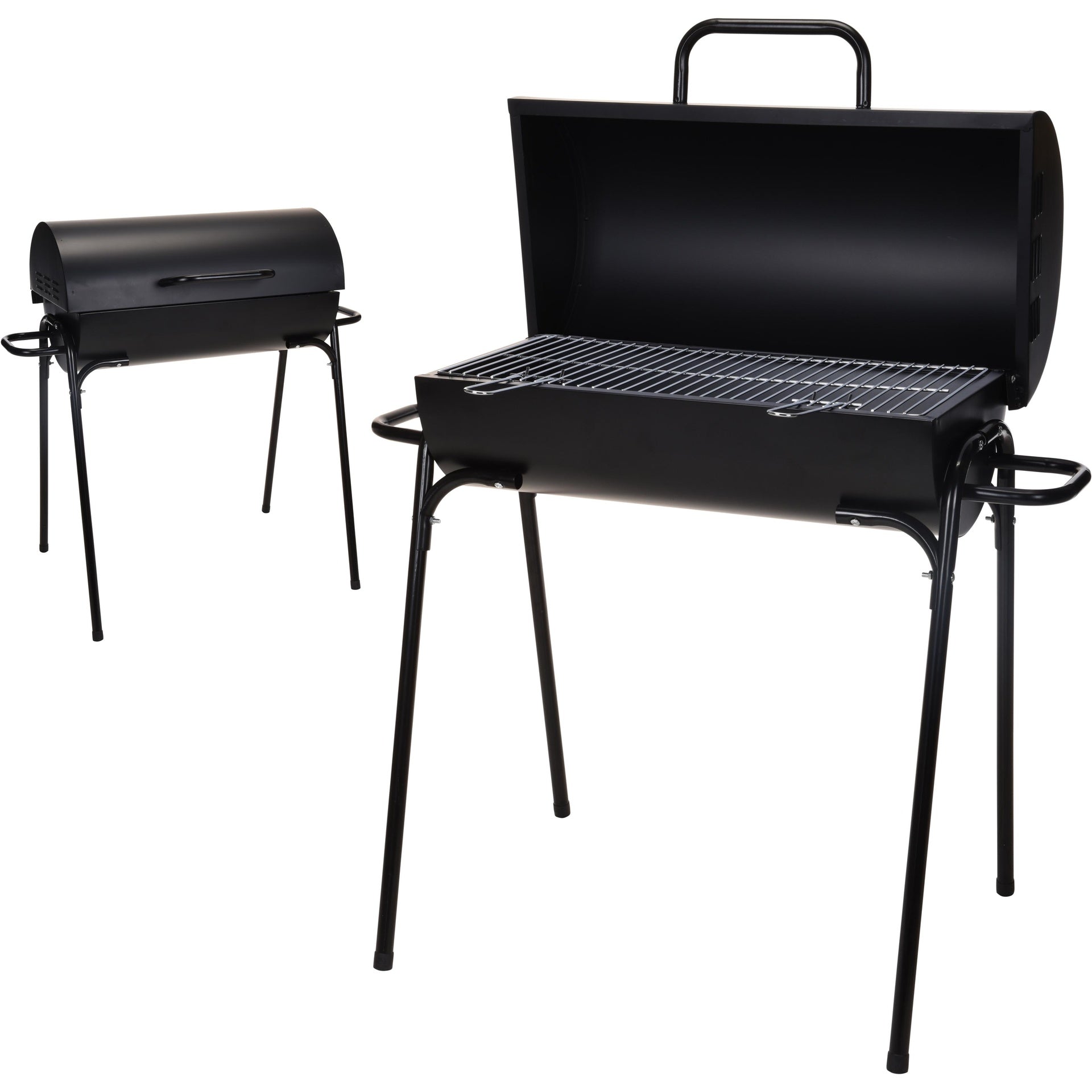 Churrasqueira a carvão em formato cilíndrico. Uma churrasqueira prática e resistente para desfrutar de todos os tipos de refeições ao ar livre.
