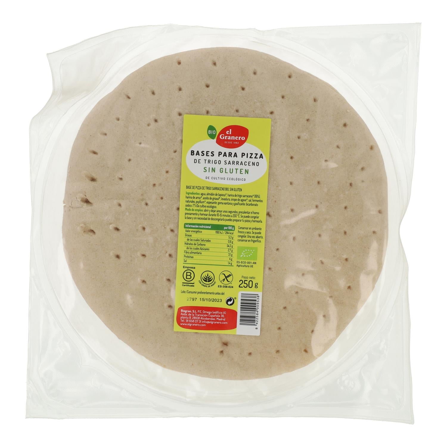 Toda a informação sobre "Base para pizza de trigo sarraceno biológico sem glúten El Granero, 2 unidades de 250 g"