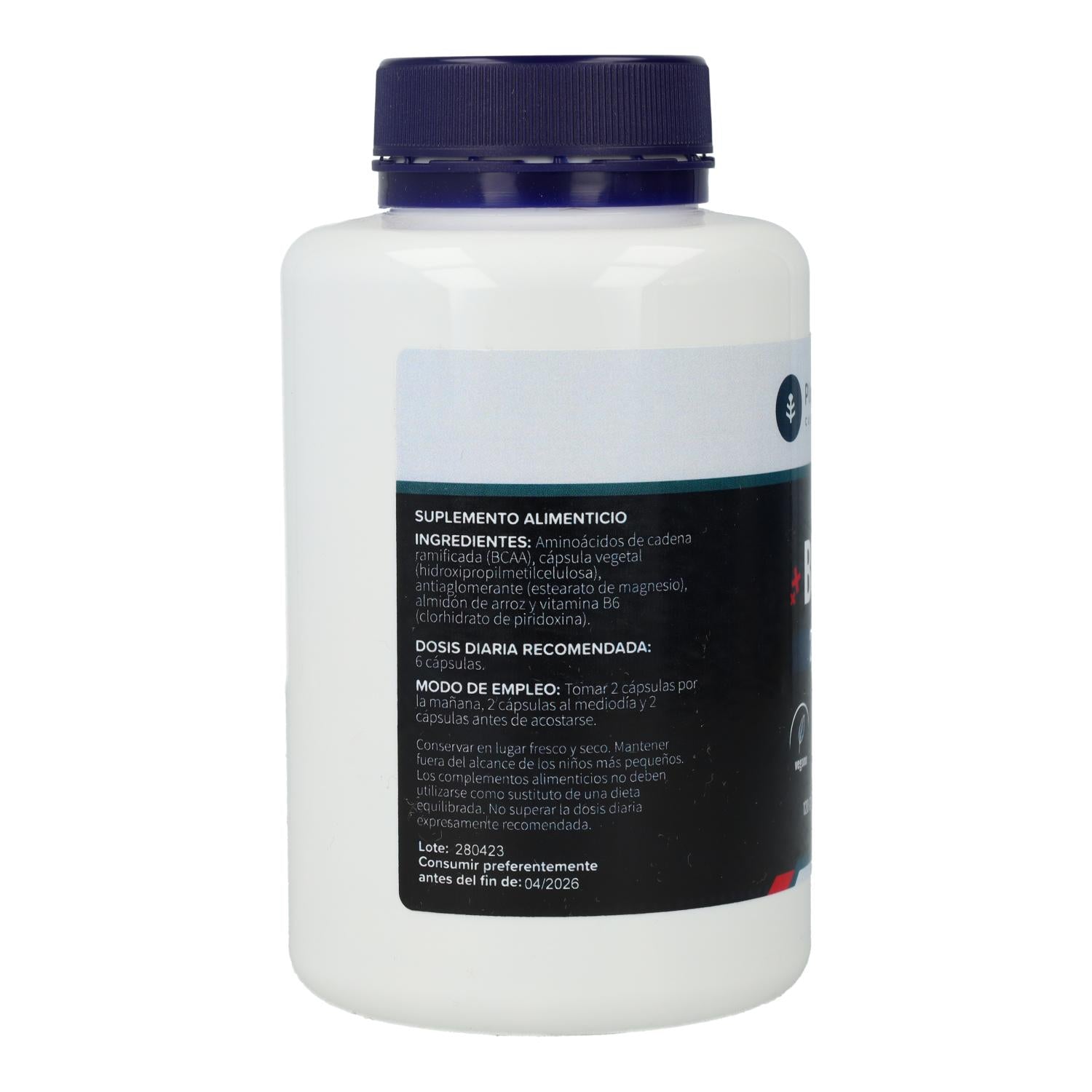 Por dose diária: BCAA 2:1:1 (L-Leucina 50%, L-Isoleucina 25%, L-Valina 25%) 3000 mg, cápsula vegetal (hipromelose), antiaglomerante (estearato de magnésio), amido de arroz 20 mg e vitamina B6 1,98 mg (141% VRN).
