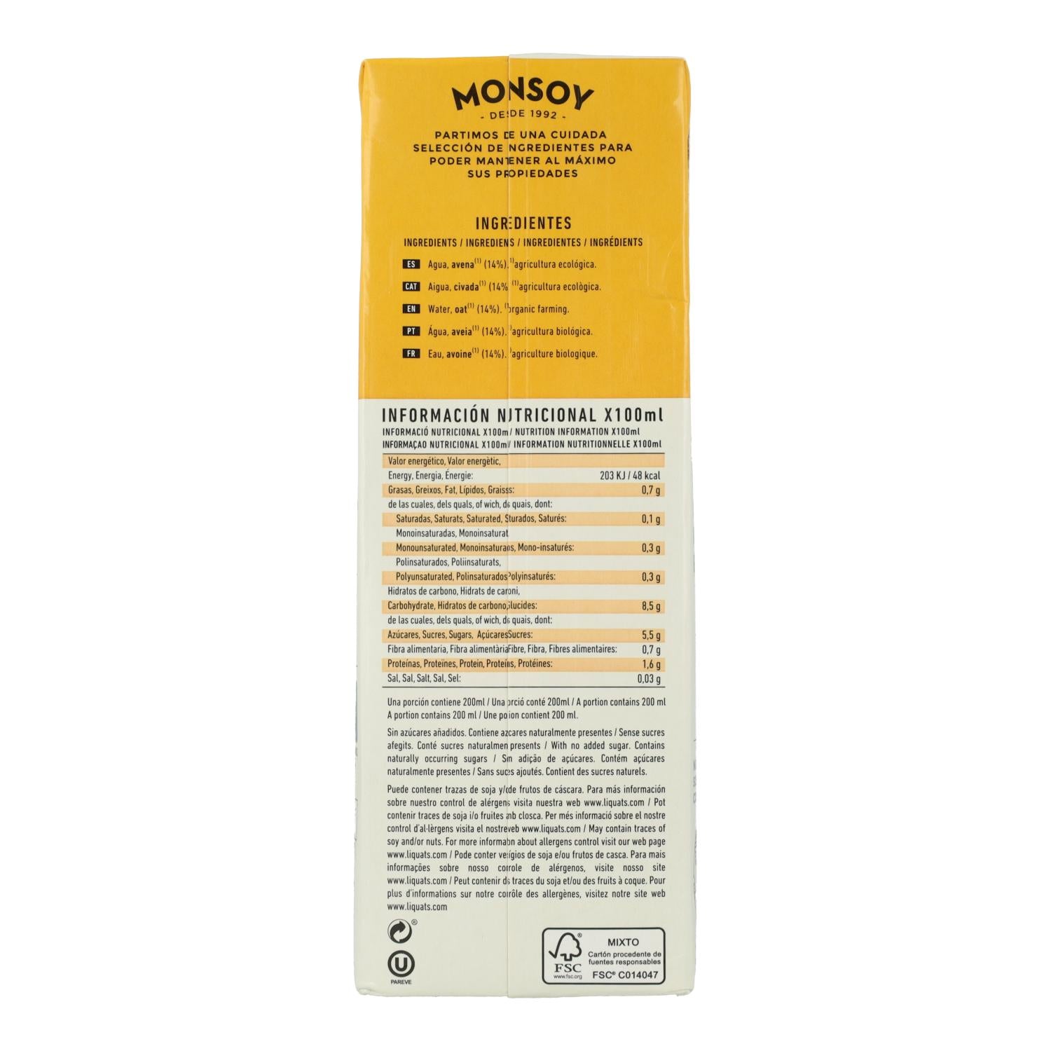 Bebida de Aveia Biológica Sem Glúten Monsoy 1 L
