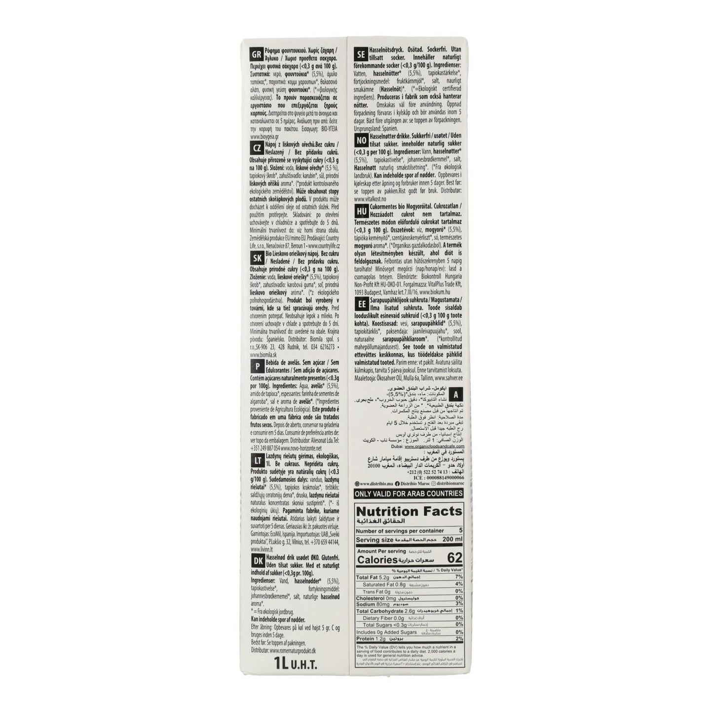 Toda a informação sobre "Bebida de Avelã Sem Açúcar Ecomil 1 L"