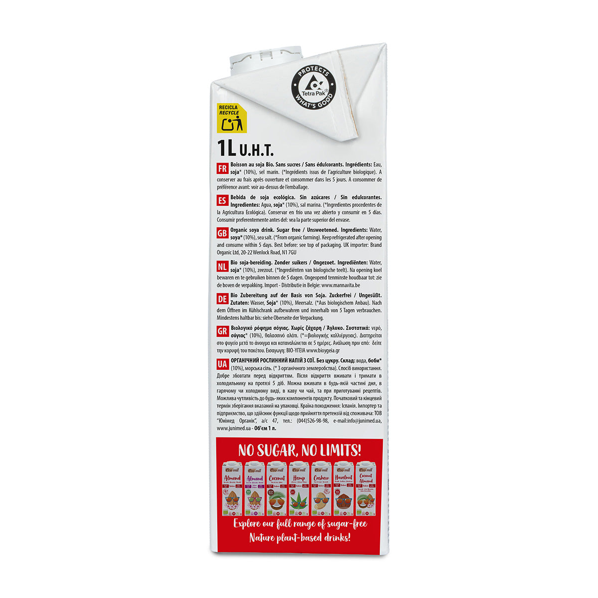 Bebida de soja ecológica sin azúcares ni edulcorantes añadidos. Elaborada con soja procedente de agricultura ecológica, es una alternativa vegetal a la leche, apta para personas que evitan la lactosa o la proteína láctea. Puede consumirse sola o utilizarse como ingrediente en recetas dulces y saladas.