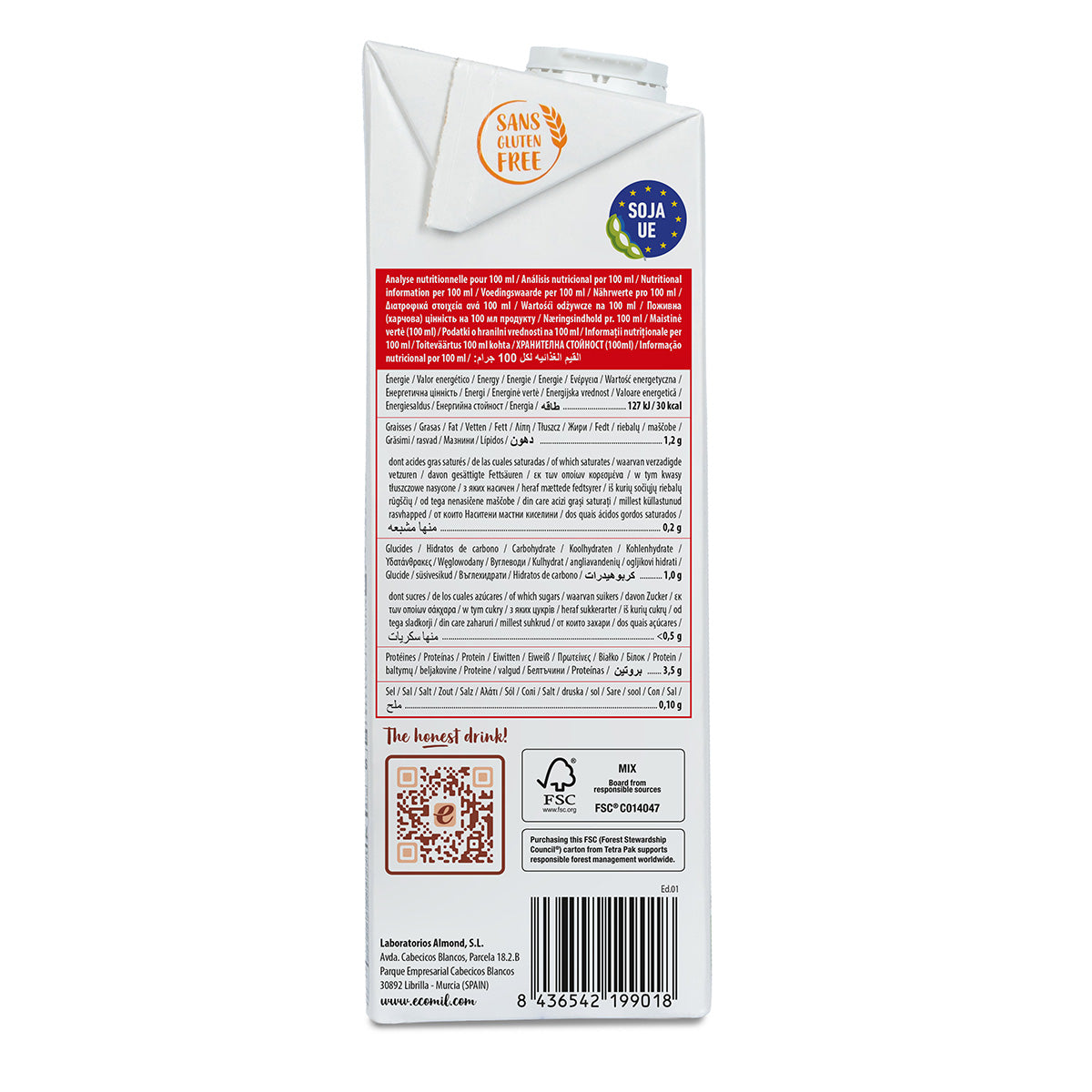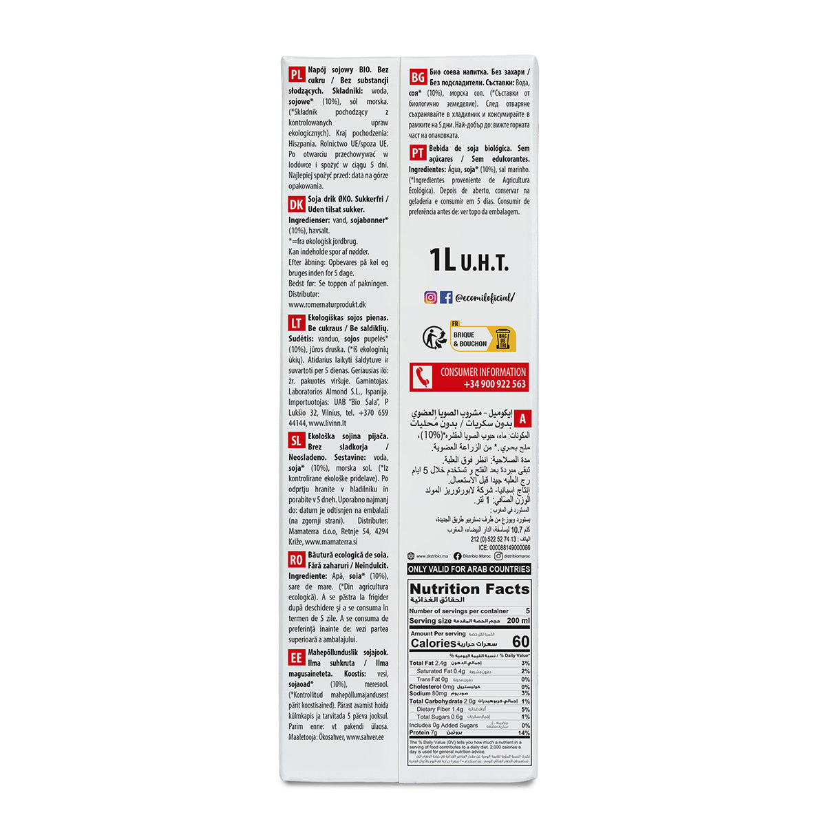 Toda a informação sobre "Bebida de Soja Sin azúcar Ecomil Bio 1 L"