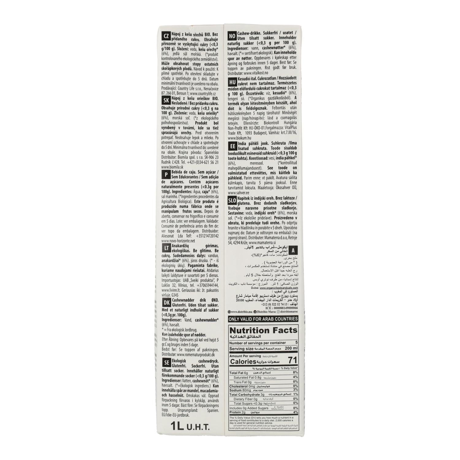 Toda a informação sobre "Bebida Vegetal de Caju Nature Bio Ecomil 1 L"