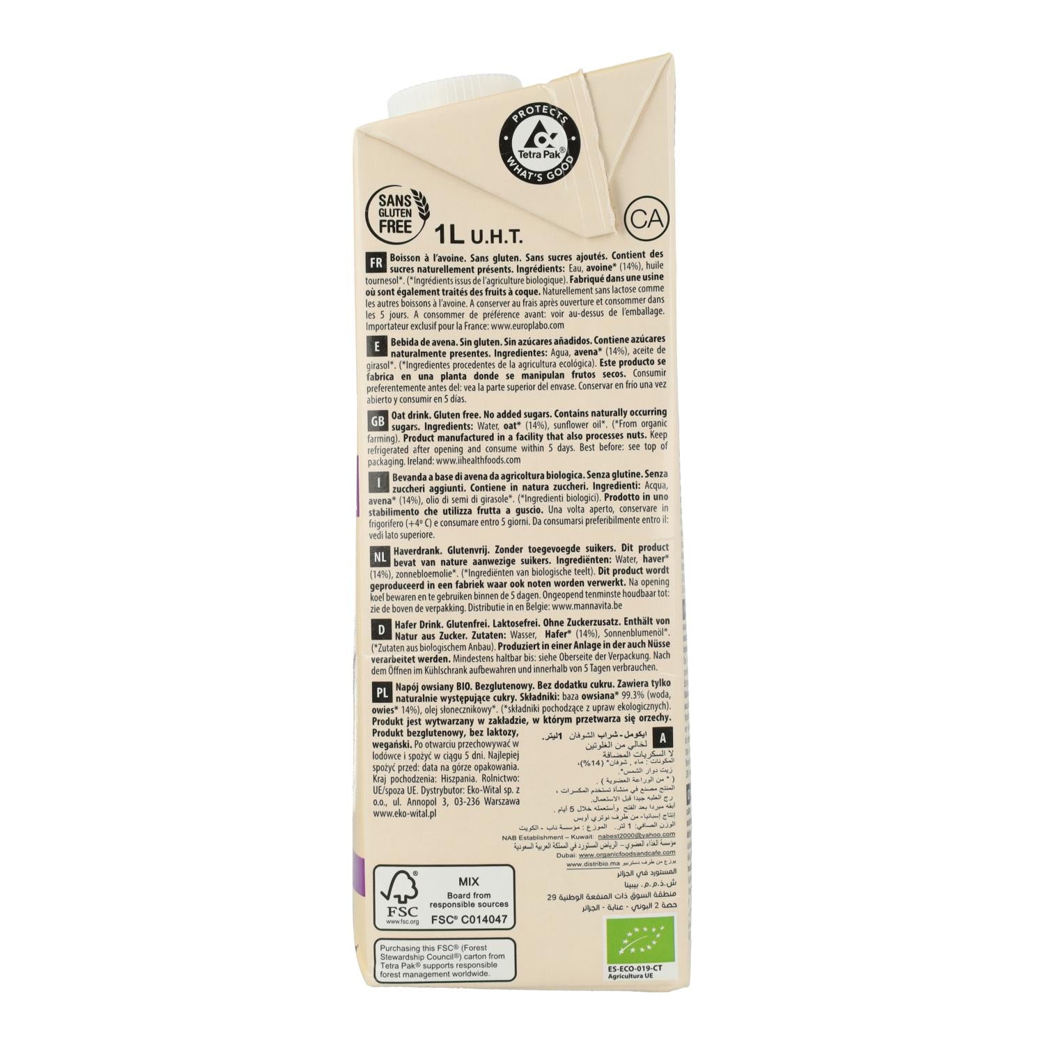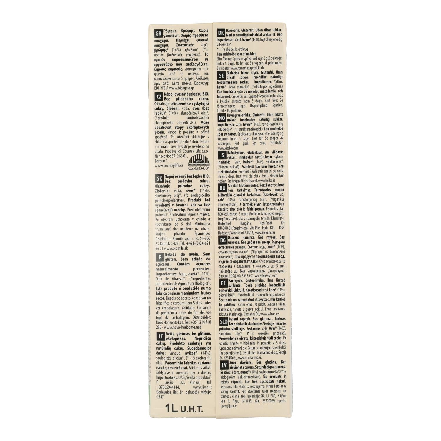 Ingredientes: Água, aveia* (14%), óleo de girassol*. Este produto é fabricado numa instalação que processa nozes. *Ingredientes provenientes da agricultura biológica.