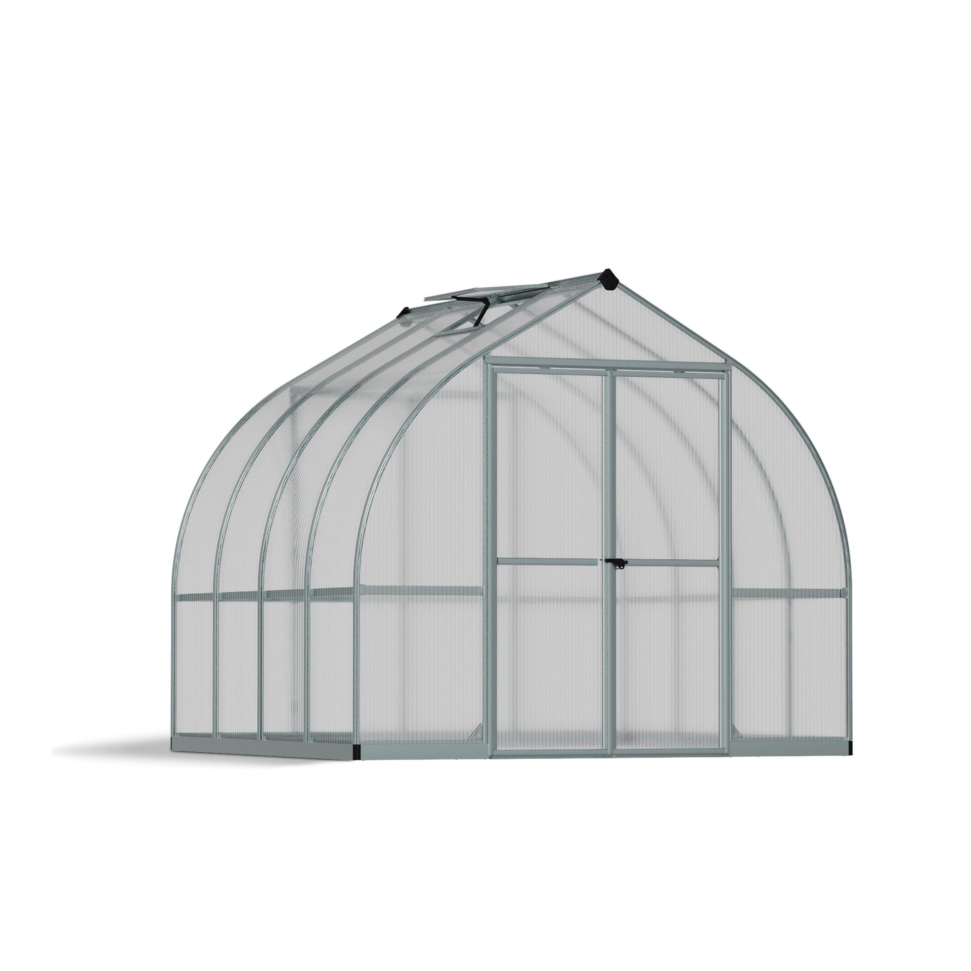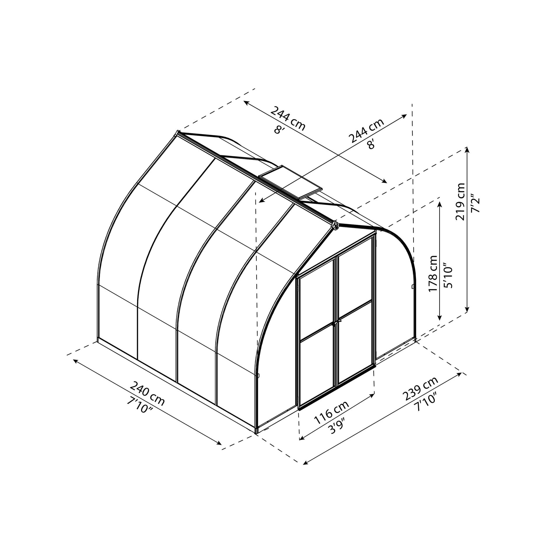 Bella é uma bonita e prática estufa com 2,48 m de largura, com painéis de policarbonato de parede dupla praticamente inquebráveis, criando a combinação ideal de difusão da luz solar, isolamento térmico e segurança para todas as suas necessidades de jardinagem. A estufa em forma de sino foi concebida especificamente para melhorar a resistência ao vento e permitir que a neve deslize facilmente.