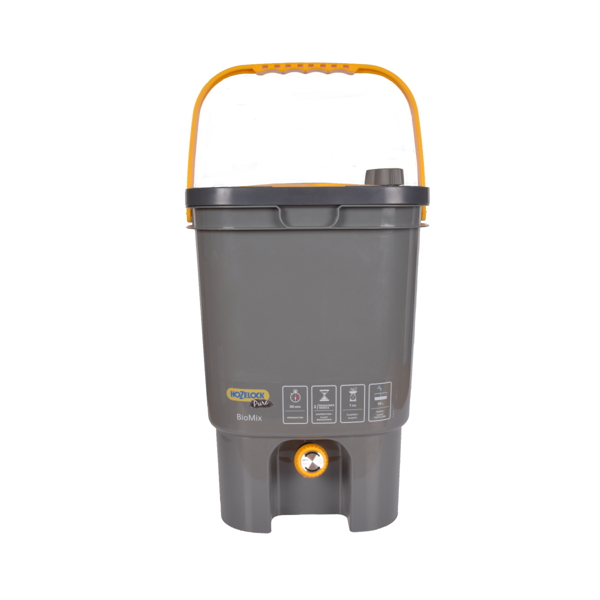 Jardinagem sem químicos – Faça com BioMix Hozelock, um fertilizante líquido e inseticida natural para as suas plantas. Com O BioMix é muito fácil; a sua tampa mantém os maus odores dentro do recipiente, enquanto o mecanismo de mistura garante a rápida decomposição das folhas.
