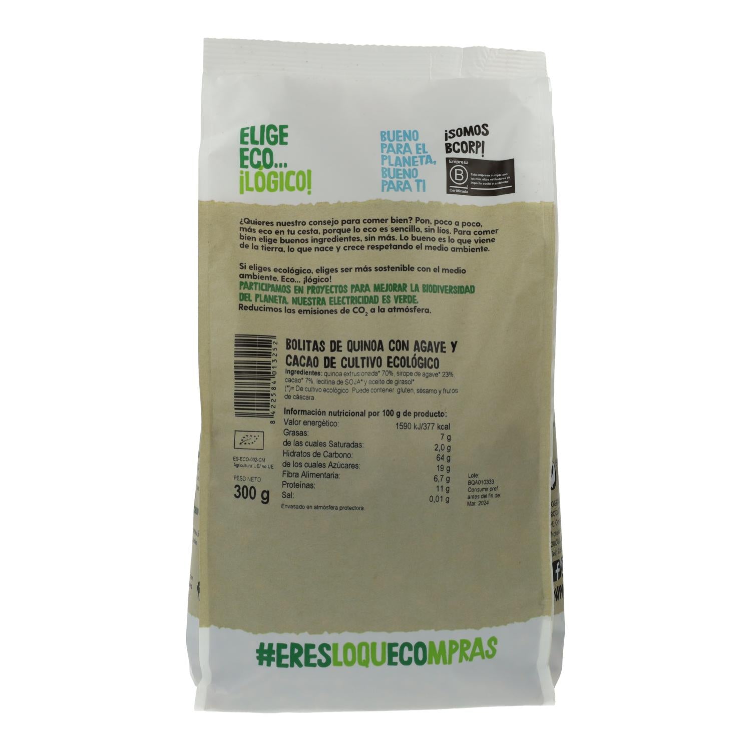 Toda a informação sobre "Bolinhas de Quinoa Biológica Disney Ecocesta com Agave e Cacau, 300g"