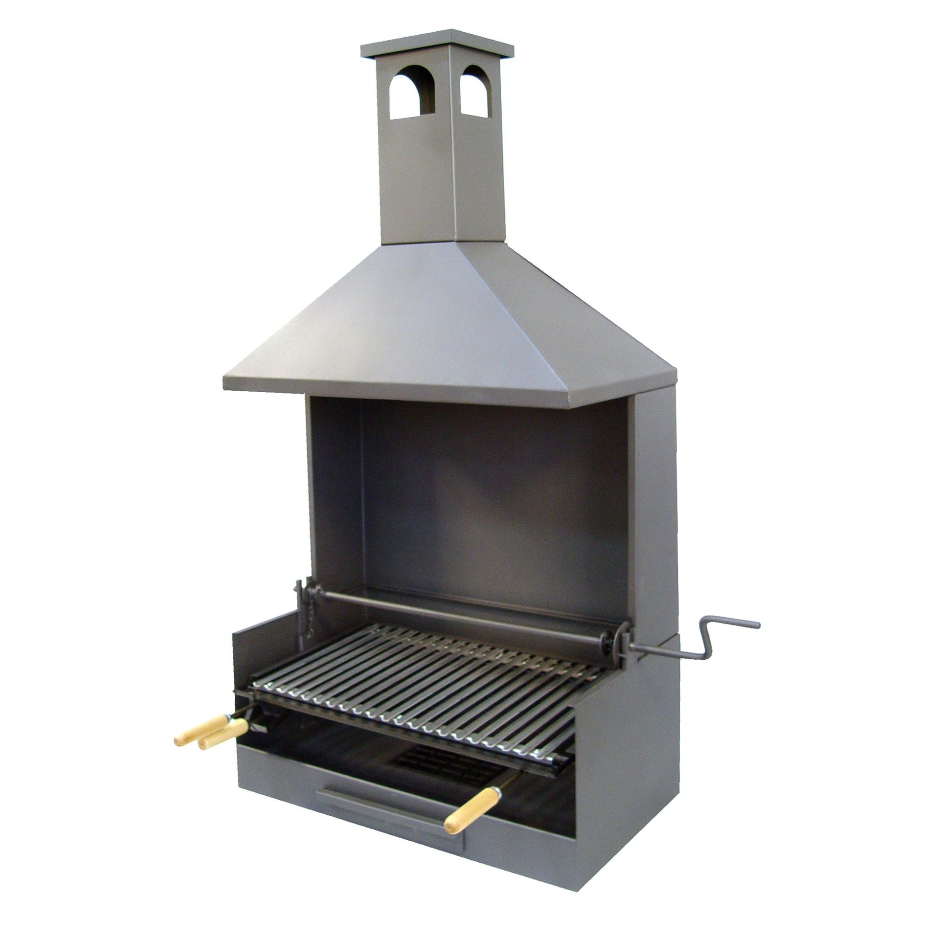 - Com gaveta para cinzas e grelha elevatória para regular a altura.