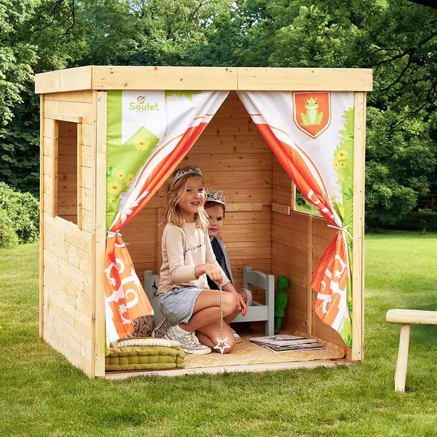 A casinha de brincar Princesse adapta-se a qualquer espaço e é ideal para pátios e jardins com espaço limitado. Com este adorável conjunto de brinquedos para exteriores, as crianças podem criar o seu próprio espaço privado para brincar, ler ou até mesmo relaxar. A nossa casinha Princesse de Soulet é ideal para as crianças sonharem e se divertirem enquanto imaginam histórias de castelos, príncipes e princesas.