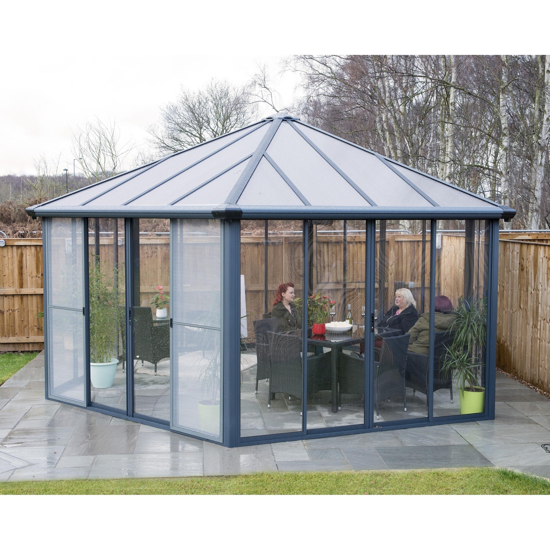 La Garda oferece um espaço amplo, ideal para desfrutar da natureza com a segurança de um ambiente interior. Esta sala exterior maravilhosamente espaçosa e separada foi concebida para ser desfrutada em todas as estações, permitindo-lhe passar mais tempo a relaxar, a apreciar o seu jardim ou a deliciar-se num spa privado à vontade. • Estrutura para todas as condições climatéricas, altamente durável, resistente à ferrugem e extra-rígida