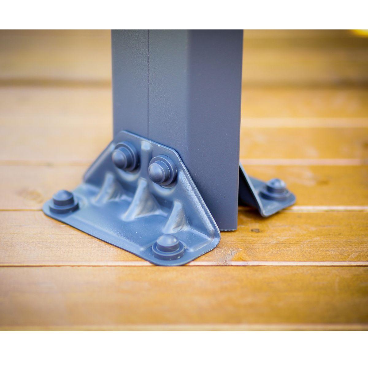 Estrutura robusta, resistente à ferrugem, revestida com pó antracite, fabricada em alumínio de alta resistência e conectores de aço galvanizado cortados a laser.