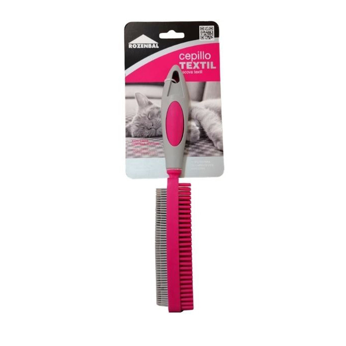 Cepillo textil para sofás, cortinas y todo tipo de textiles. Es perfecto para limpiar los pelos de las mascotas, ya que los atrapa dejando la superficie limpia. El cepillo tiene doble cara para un uso adaptable: los filamentos gruesos limpian y arrastran de forma más rápida la suciedad y con los más finos conseguimos un resultado más minucioso. Tecnología de inyección TPR para mayor confort y ergonomía.