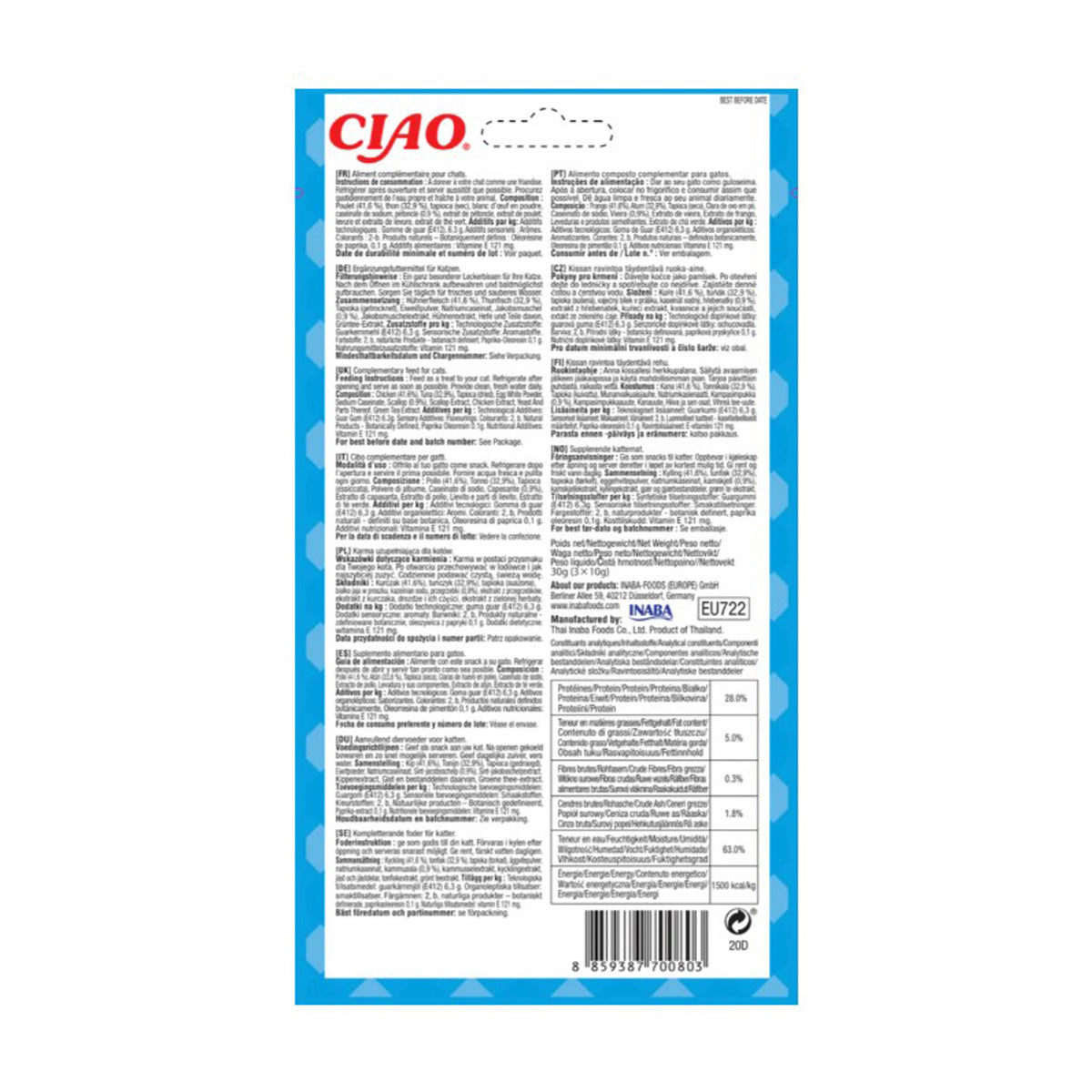Toda a informação sobre "Churu Cat Bites receita de atum com vieira Snack para gatos 3 x 10 g"