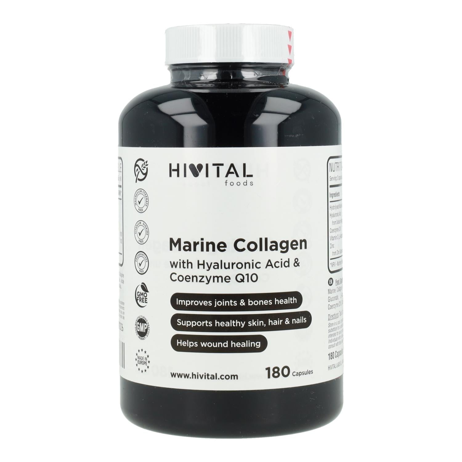 Toda a informação sobre "Colagénio Marinho com Ácido Hialurónico, Coenzima Q10, Vitamina C e Zinco Hivital 180 cápsulas"