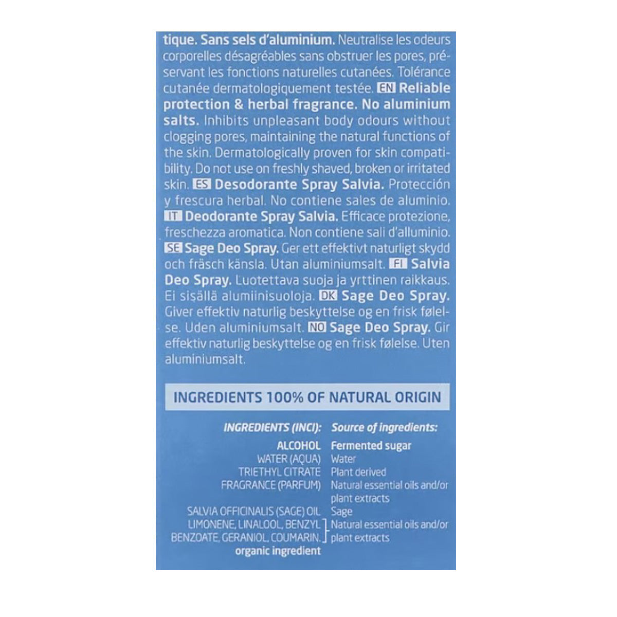 Graças à sua composição à base de óleos essenciais naturais de sálvia, tomilho e alecrim biológico, este desodorizante é um dos favoritos entre os homens. Neutraliza e previne odores corporais desagradáveis, proporcionando mais de 12 horas de proteção eficaz. Além disso, por não obstruir os poros, preserva as funções naturais de regulação da pele.