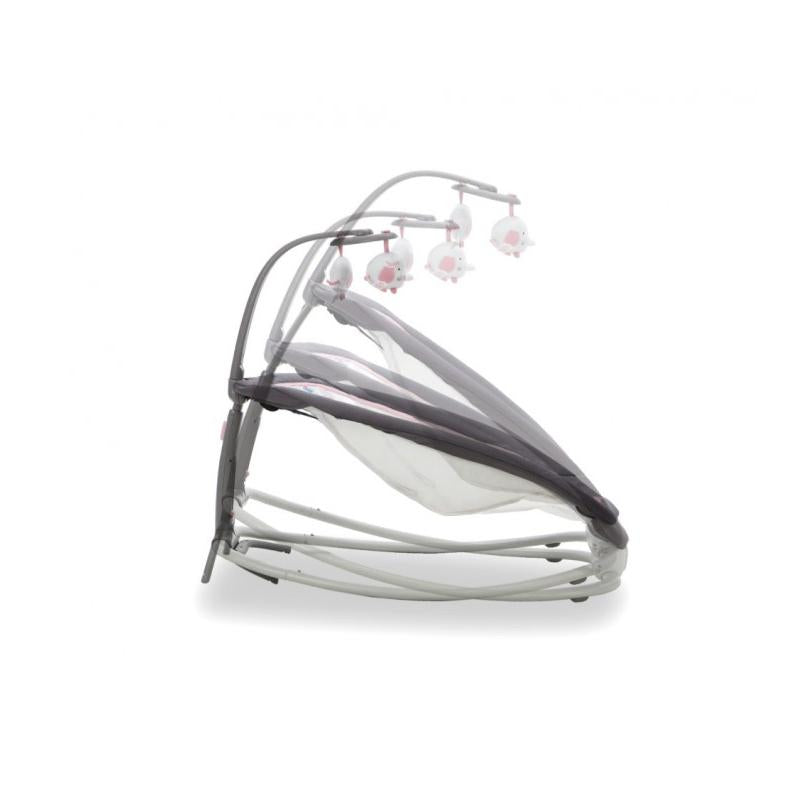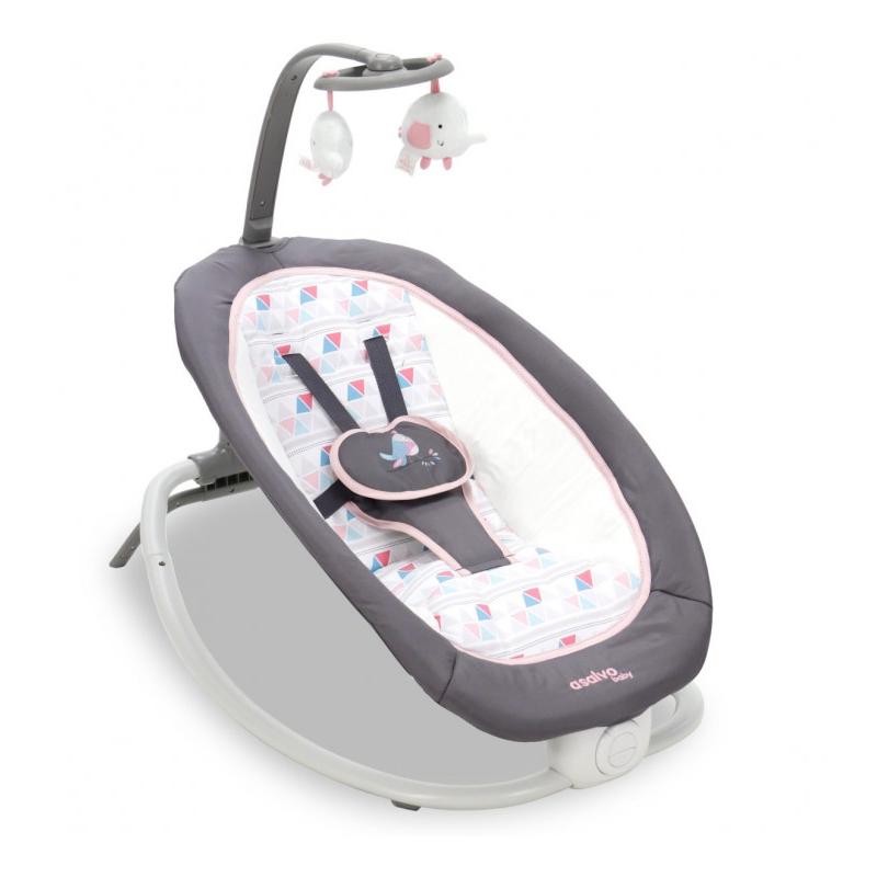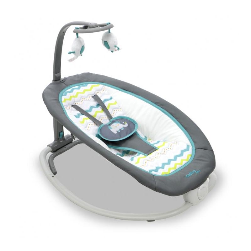 A cadeira de baloiço FOLD dobra-se de forma compacta para facilitar o transporte. Inclui música suave e vibração para ajudar a acalmar e relaxar os mais pequenos, bem como uma barra de brinquedos removível para estimular as capacidades motoras do bebé.