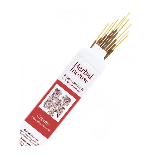 Incenso orgânico de gerânio ayurvédico, certificado pelo ICEA, para o prazer da aromaterapia natural sem perfumes sintéticos ou tóxicos.