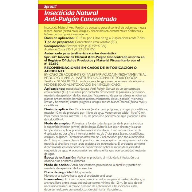 - Substâncias ativas: 4,59 g/L de piretrina, das flores de Chrysanthemum cinerariaefolium, e 825,3 g/L de óleo de colza.