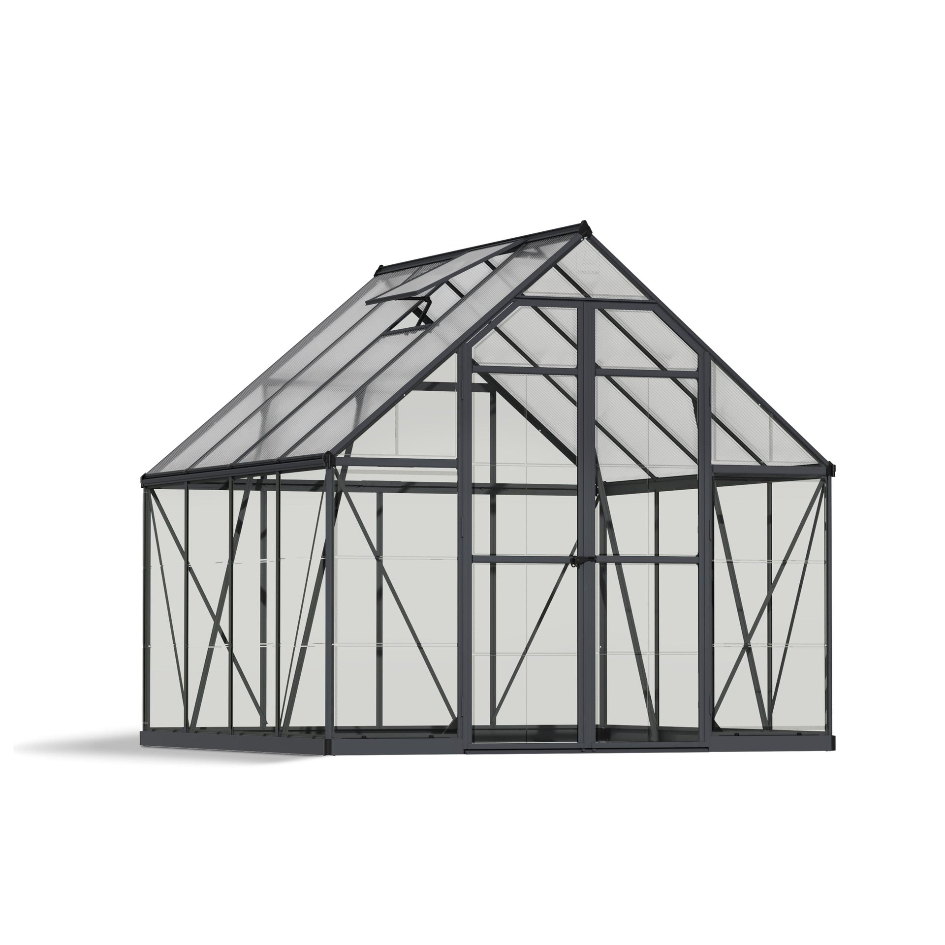 Com dois tipos de envidraçados, terá uma estufa DIY bem equilibrada que combina a proteção dos painéis de teto de parede dupla difusa com a transmissão de luz dos painéis de parede cristalinos, proporcionando condições de cultivo ideais. Todos os painéis são fabricados em policarbonato com proteção UV, um polímero de alta qualidade e praticamente inquebrável, ideal para estufas.