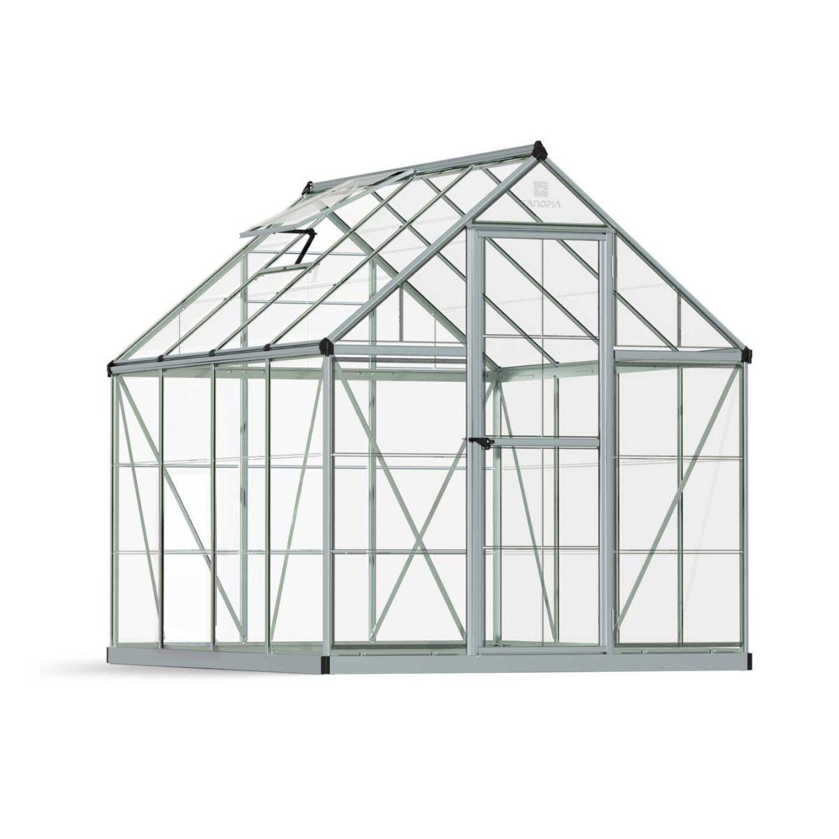 Desfrute da jardinagem em estufa com a Estufa Harmony de 1,80 m x 2,40 m. Esta estufa de tamanho divertido é grande o suficiente para os seus sonhos de jardinagem, mas pequena o suficiente para caber no seu deck, pequeno pátio ou varanda. Esta estufa inclui uma base perimetral em aço galvanizado resistente à ferrugem, que acrescenta suporte estrutural, estabilidade e alinhamento. É feita de painéis de policarbonato transparente praticamente inquebráveis, fáceis de deslizar e bloquear, e uma estrutura de alumínio prateado natural resistente à ferrugem. A ventilação da estufa ajuda a manter os níveis de temperatura e humidade desejados e proporciona ventilação. Com o seu design elegante e delicado, o resultado final é bonito, funcional, resistente e construído para durar. • Os painéis de policarbonato praticamente inquebráveis e cristalinos proporcionam mais de 90% de transmissão de luz e bloqueiam os raios UV prejudiciais