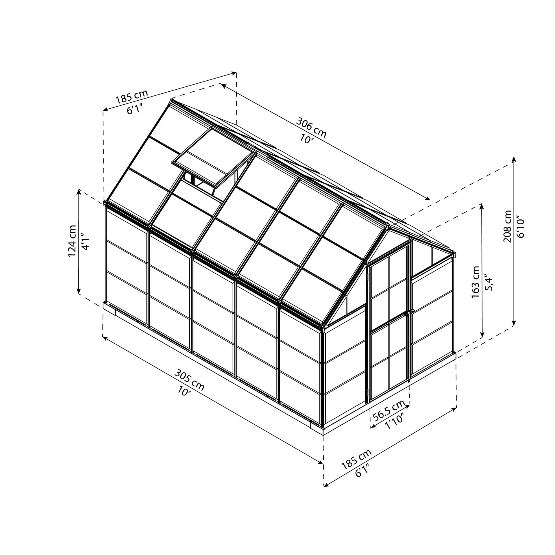 Desfrute da jardinagem em estufa com a Estufa Harmony de 1,80 m x 3 m. Encha os seus jardins de primavera e verão com as suas próprias frutas e legumes biológicos ou centenas de plantas anuais coloridas e maduras cultivadas a partir de sementes na sua estufa privada. Esta maravilhosa estufa inclui uma base perimetral em aço galvanizado resistente à ferrugem, que acrescenta suporte estrutural, estabilidade e alinhamento. É feita de painéis de policarbonato transparente praticamente inquebráveis, fáceis de deslizar e de bloquear, e uma estrutura de alumínio cinzento com revestimento em pó resistente à ferrugem. A ventilação da estufa ajuda a manter os níveis de temperatura, proporcionando ventilação. Com o seu design elegante e delicado, o resultado final é bonito, funcional, resistente e construído para durar.