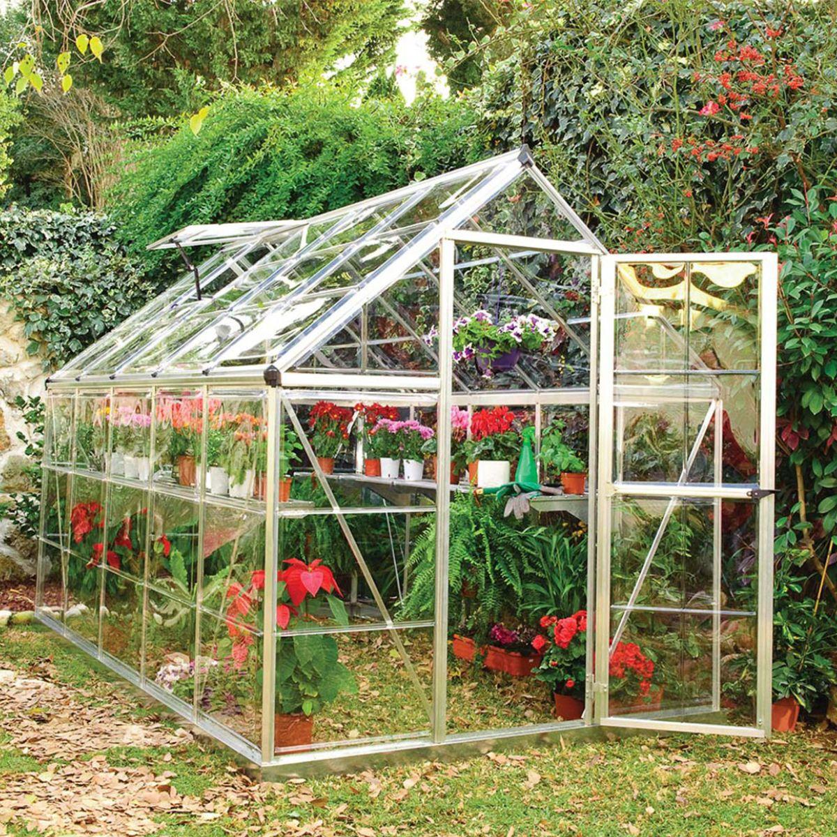 Desfrute da jardinagem em estufa com a Estufa Harmony de 1,80 m x 3 m. Esta estufa de tamanho divertido é grande o suficiente para os seus sonhos de jardinagem, mas pequena o suficiente para caber no seu deck, pequeno pátio ou varanda. Esta estufa inclui uma base perimetral em aço galvanizado resistente à ferrugem, que acrescenta suporte estrutural, estabilidade e alinhamento. É feita de painéis de policarbonato transparente praticamente inquebráveis, fáceis de deslizar e bloquear, e uma estrutura de alumínio prateado natural resistente à ferrugem. A ventilação da estufa ajuda a manter os níveis de temperatura e humidade desejados e proporciona ventilação. Com o seu design elegante e delicado, o resultado final é bonito, funcional, resistente e construído para durar. • Os painéis de policarbonato praticamente inquebráveis e cristalinos proporcionam mais de 90% de transmissão de luz e bloqueiam os raios UV prejudiciais