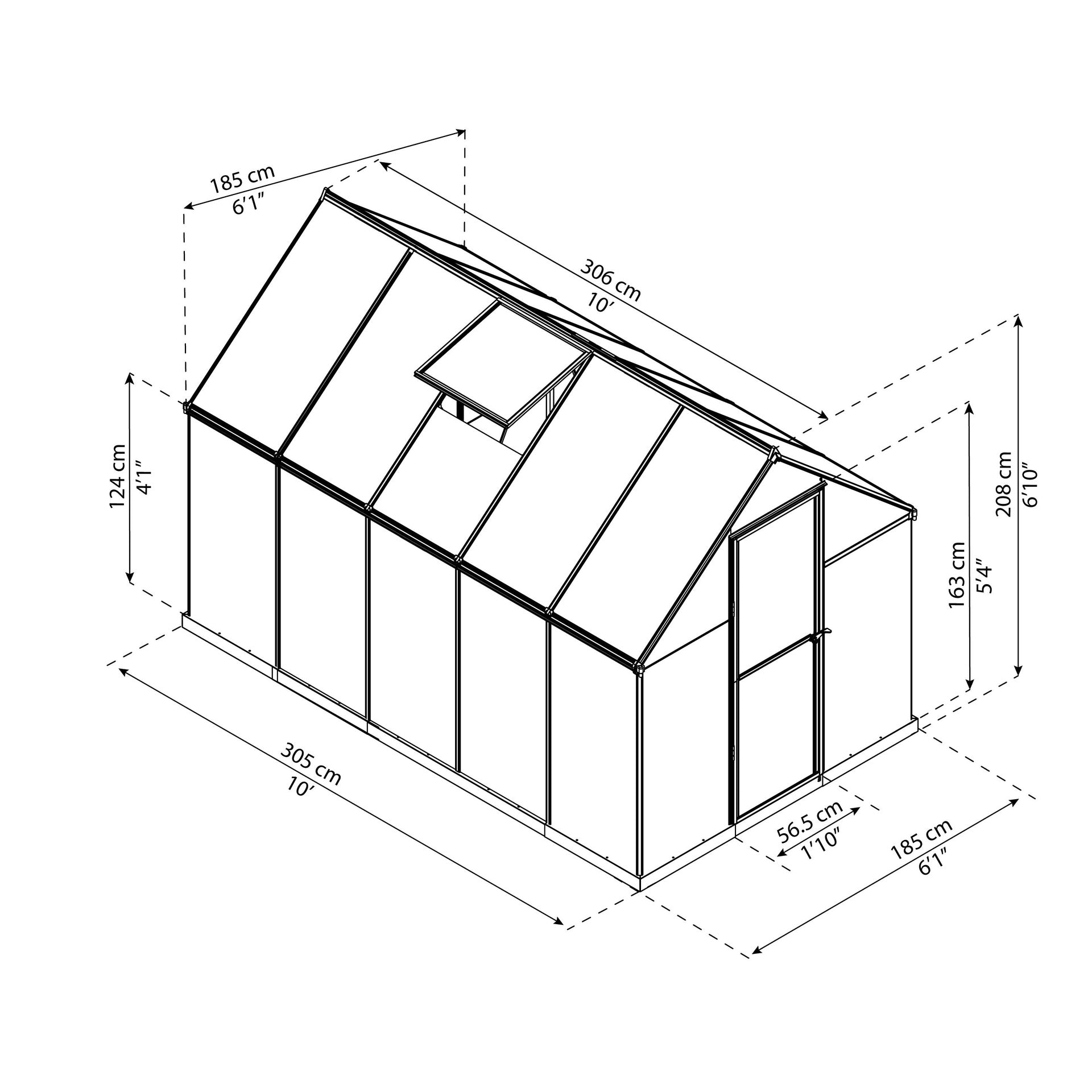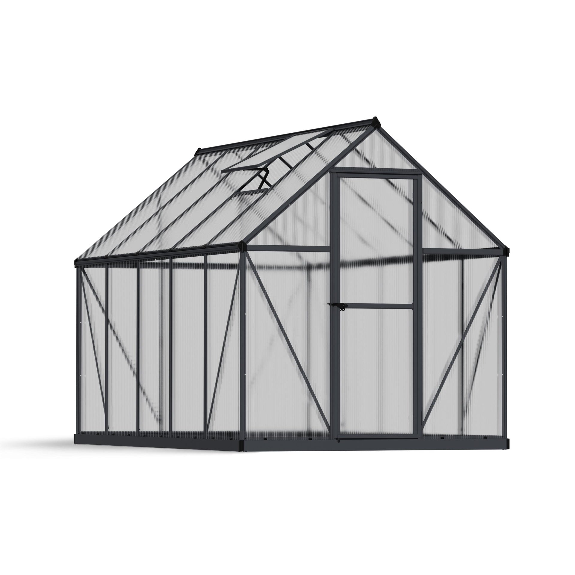 A estufa Palram Mythos é uma estufa elegante. Ajuda a manter temperaturas equilibradas e luz solar difusa para plantas sensíveis. Possui painéis de policarbonato de parede dupla praticamente inquebráveis e uma estrutura de alumínio com revestimento em pó cinzento resistente à ferrugem e de alta resistência. • Painéis de policarbonato de parede dupla praticamente inquebráveis que proporcionam mais de 70% de transmissão de luz