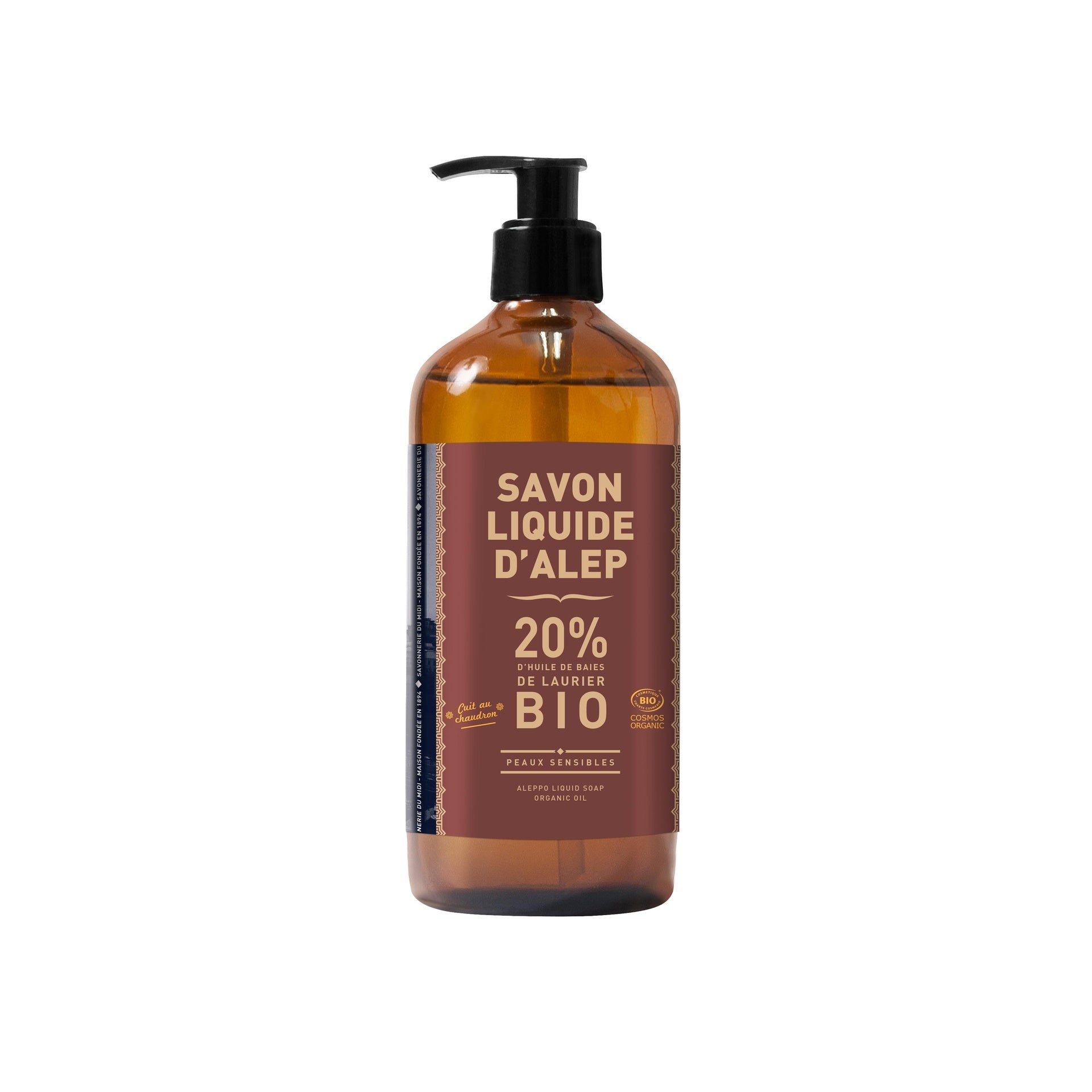 O sabonete líquido de Alepo , feito com uma receita tradicional e cozinhado num caldeirão, é certificado como biológico. Testado dermatologicamente, é um hidratante diário para toda a família e para pessoas com pele sensível.