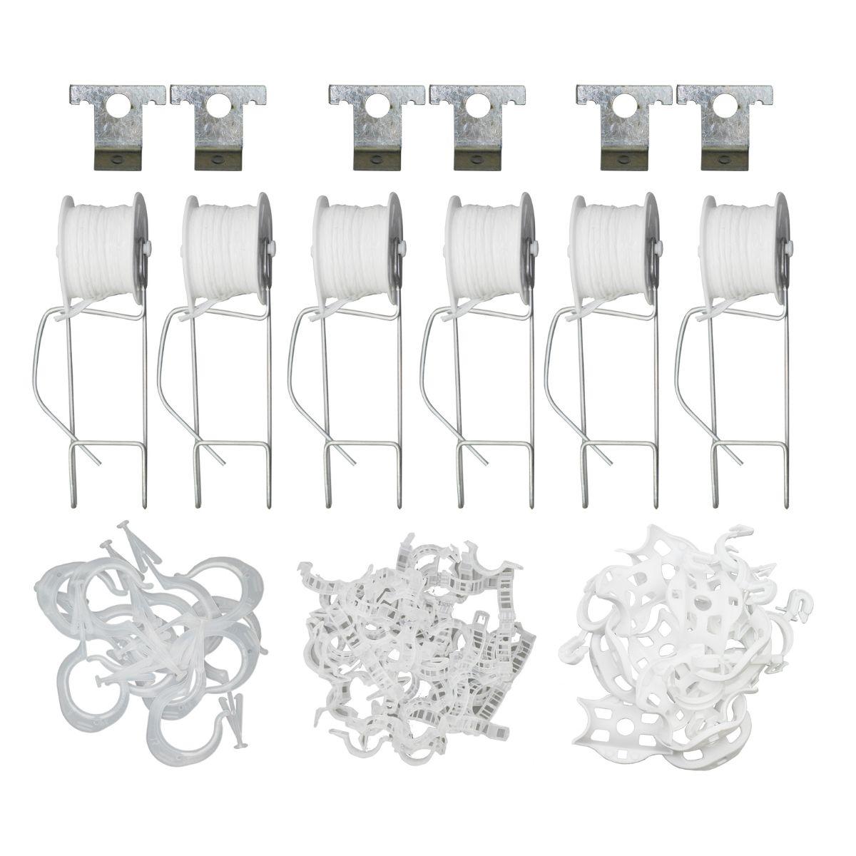 Inclui: - Bobine de 6 ganchos de rolo com 25 m de fio - 3 tipos de clipes de suporte para diferentes culturas de videira - 48 clipes - pimentos e tomates - 12 ganchos de suporte radiais - tomates e pepinos - 12 clipes de curgete - curgete