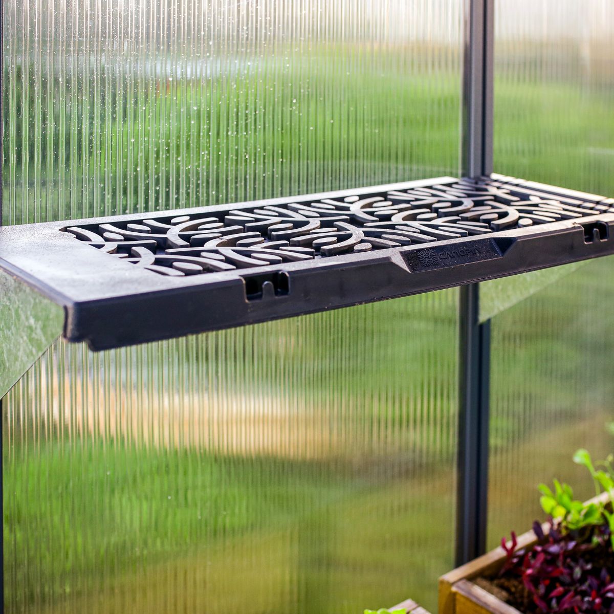 O Canopia by Palram Signature Shelf Kit™ é um sistema de prateleiras concebido para se adaptar ao interior das estufas Canopia, otimizando o espaço interior para guardar ferramentas, vasos, tabuleiros para mudas e outros acessórios de jardinagem. Fabricado com materiais resistentes às intempéries, o seu design permite uma instalação segura e resistente na estrutura da estufa, sem necessidade de suportes no solo.