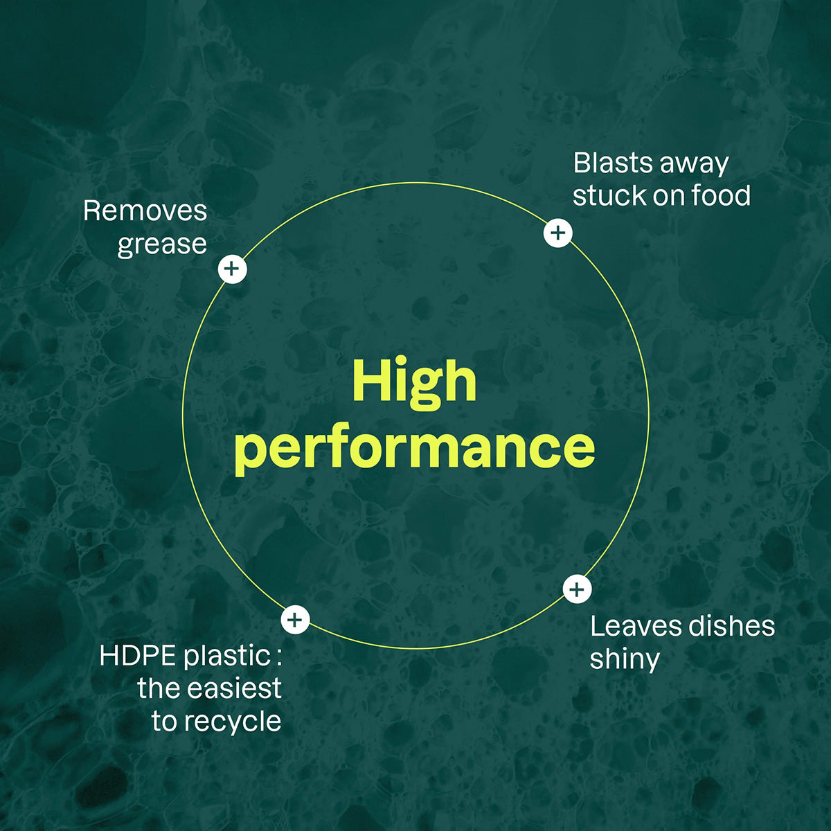 Muito eficaz para a loiça, sem agredir nem a pele nem o ambiente, pois não deixa resíduos químicos desnecessários.