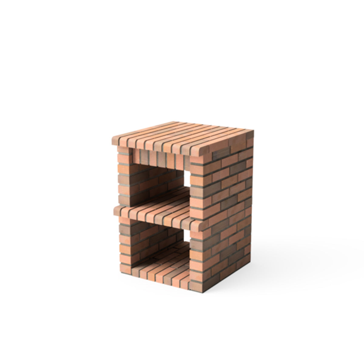 Suporte lateral feito de betão refratário e tijolo laranja claro.