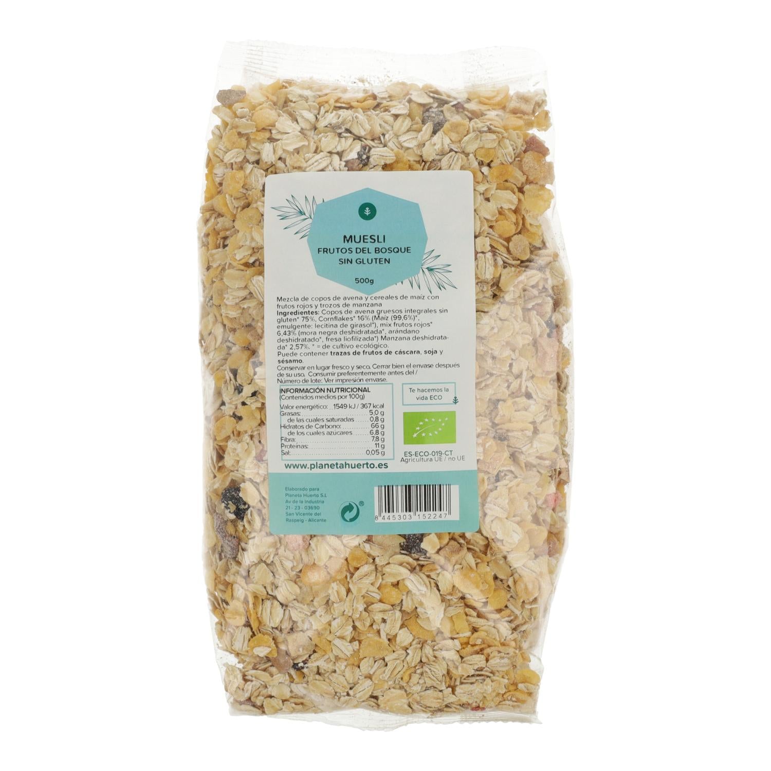 Toda a informação sobre "Muesli sem glúten de frutos da floresta ECO Planeta Huerto 500 g"