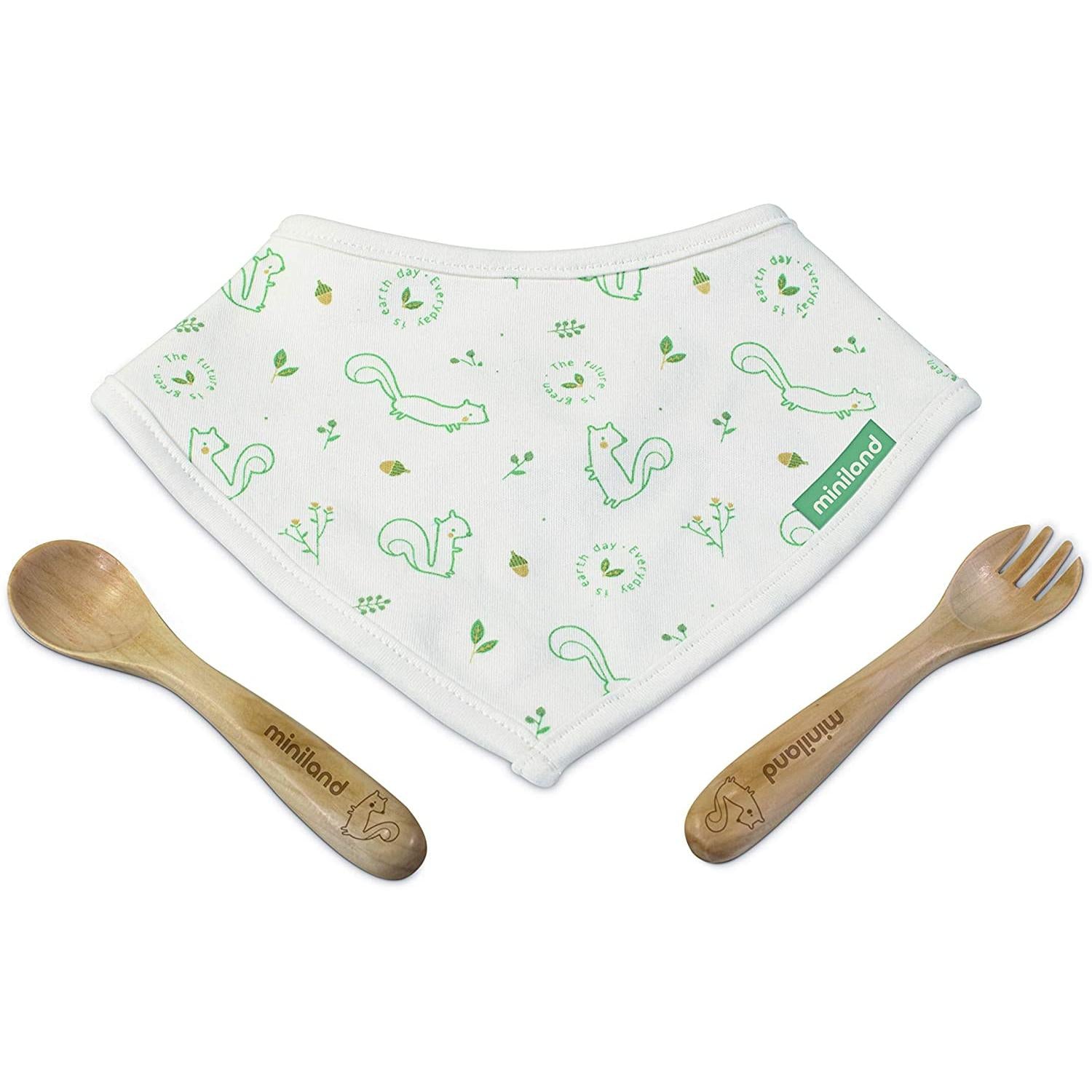 Bandana de algodão natural, colher e garfo em madeira.