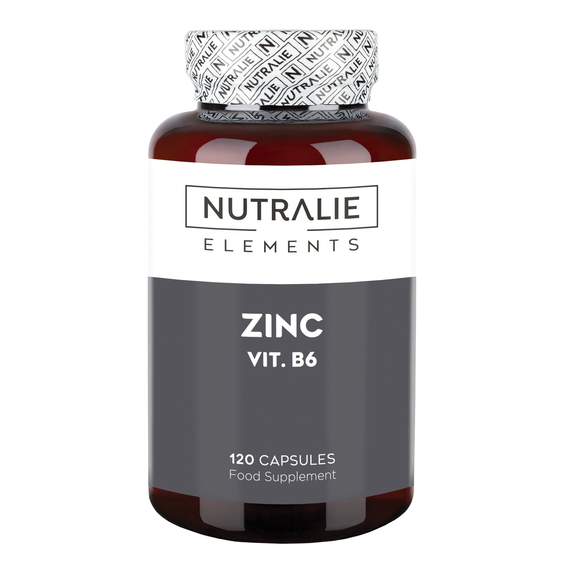 Nutralie Zinc Elements é um suplemento alimentar vegan que contém 15 mg de zinco sob a forma de citrato em cada cápsula, bem como 5 mg de vitamina B6, atendendo à ingestão diária recomendada de ambos os nutrientes.