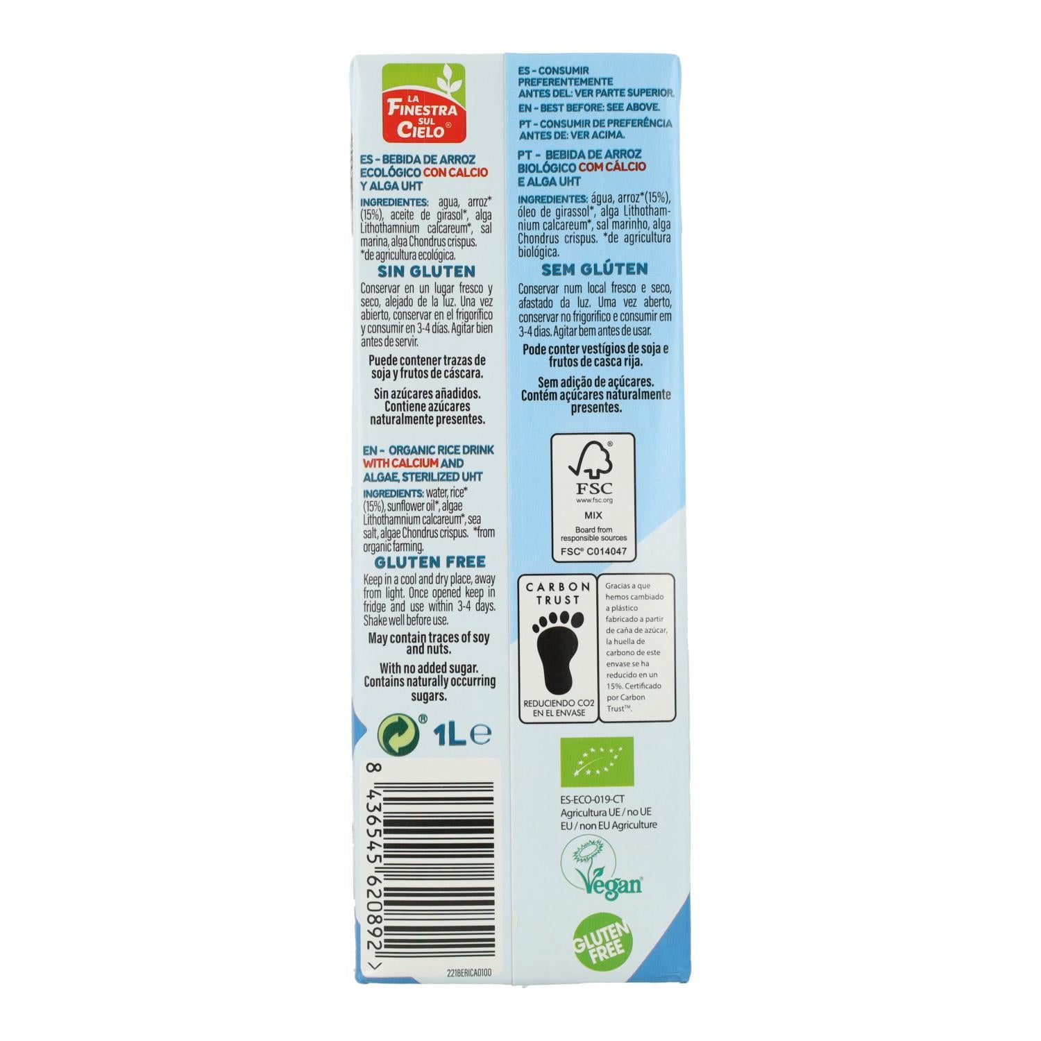 Toda a informação sobre "Pack de 6 Bebidas de Arroz La Finestra Sul Cielo com Cálcio 1 L"