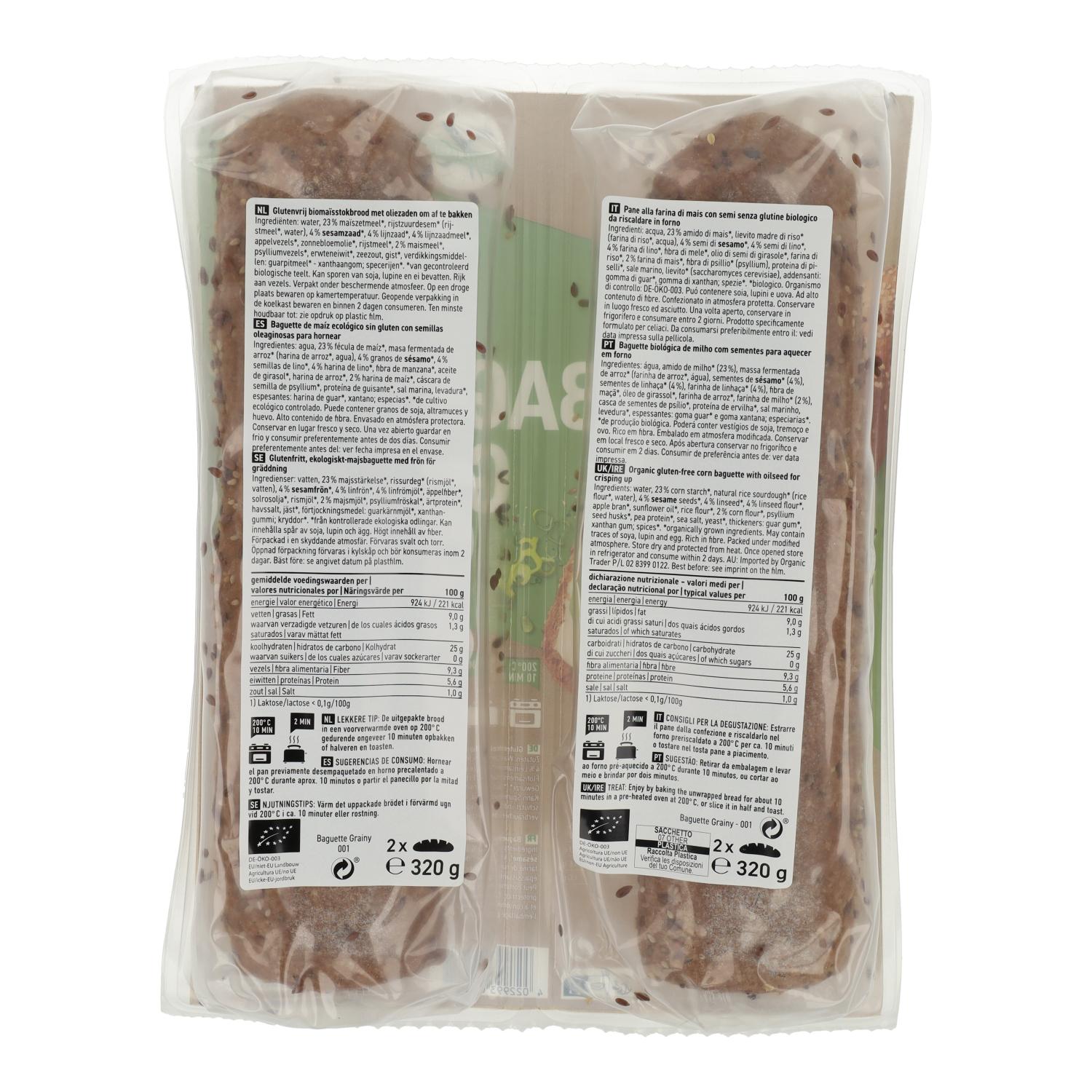 Toda a informação sobre "Pão baguete com sementes granuladas, biológico, sem glúten, Schnitzer 320 g"