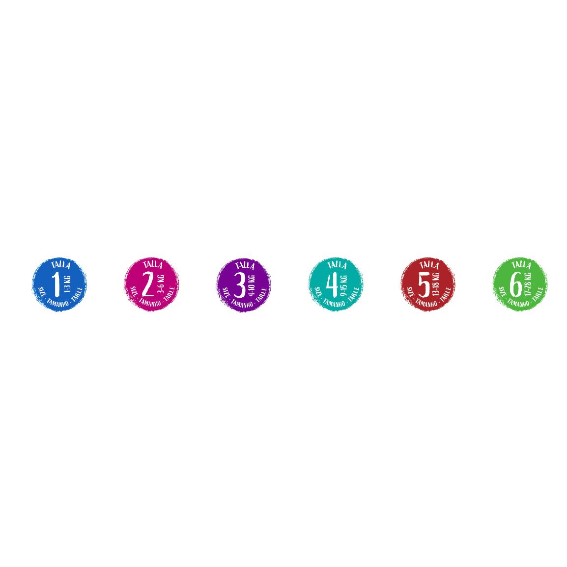 - Até 12 horas seco: incorpora pérolas superabsorventes e uma folha branca que dispersa a urina rapidamente para proteger o bebé da humidade.