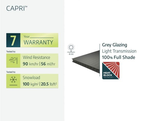 Toda a informação sobre "Pérgola anexa Capri 299x860 cm cinzento Canopia da Palram "