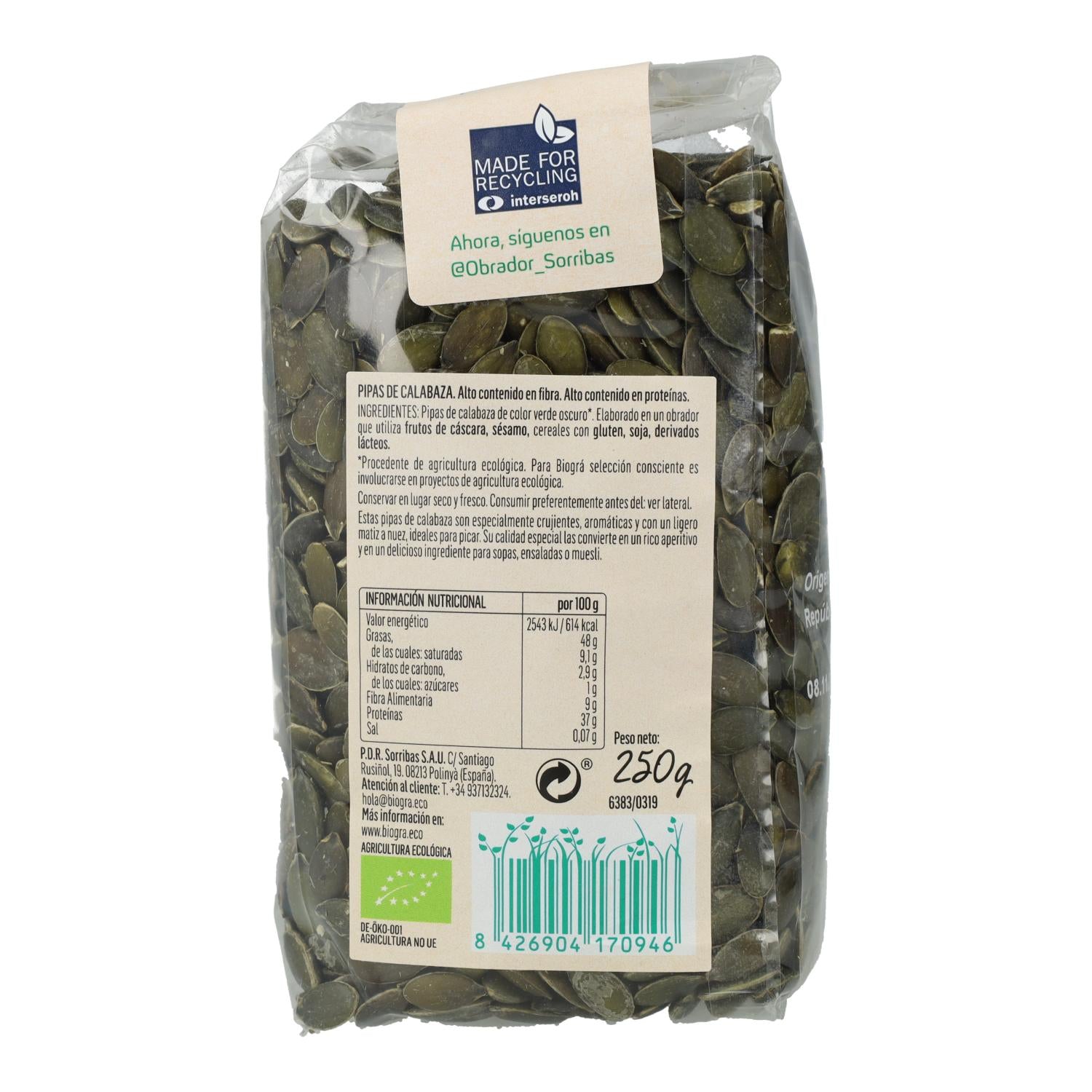 Toda a informação sobre "Sementes de Abóbora Biográ Biográ 250 g"