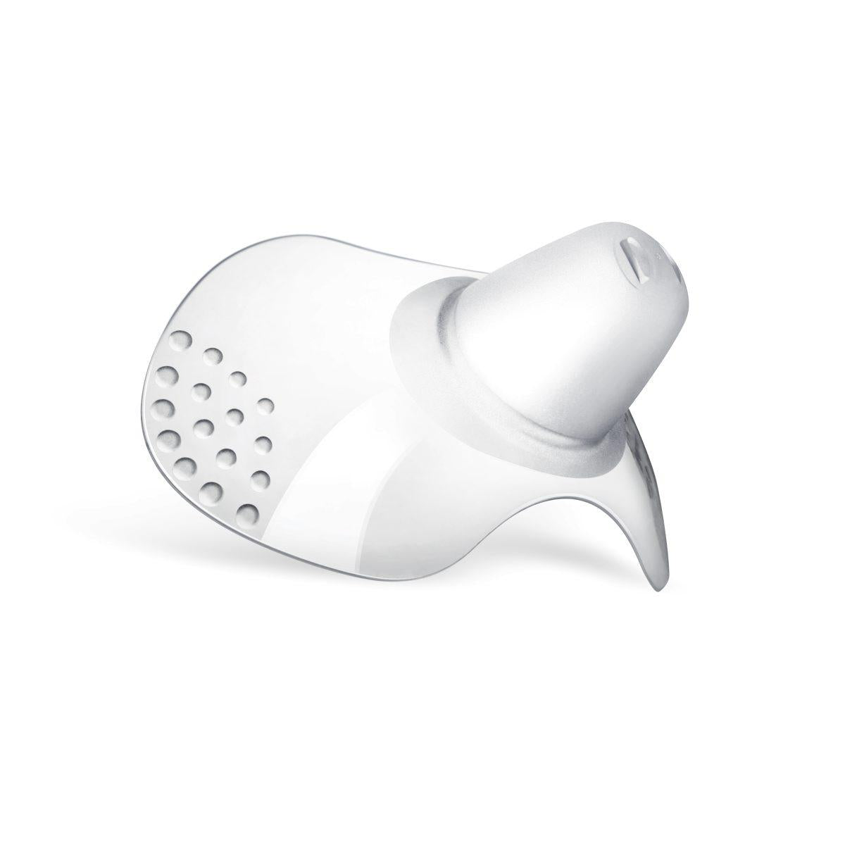 Os protetores de mamilos permitem o máximo contacto pele a pele: o seu formato exclusivo garante o contacto entre o queixo e o nariz do bebé e o peito da mãe.