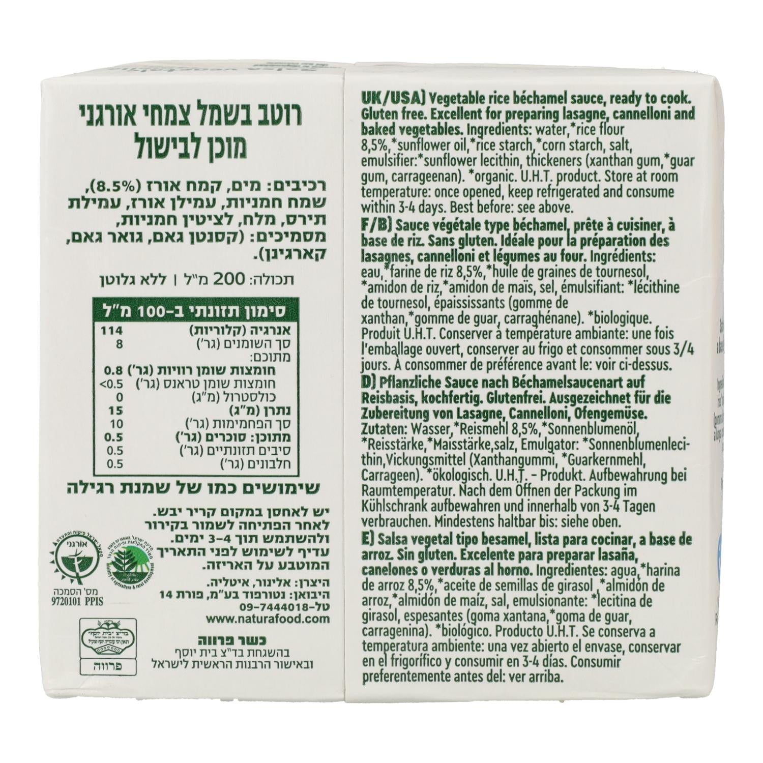 Molho bechamel de legumes feito com arroz italiano, com uma textura cremosa e um sabor equilibrado. Pronto a usar, é ideal para pratos assados ou gratinados, como lasanha, cannelloni, moussaka ou legumes assados. Este produto UHT é isento de glúten e lactose, adequado para dietas veganas e feito com ingredientes biológicos.