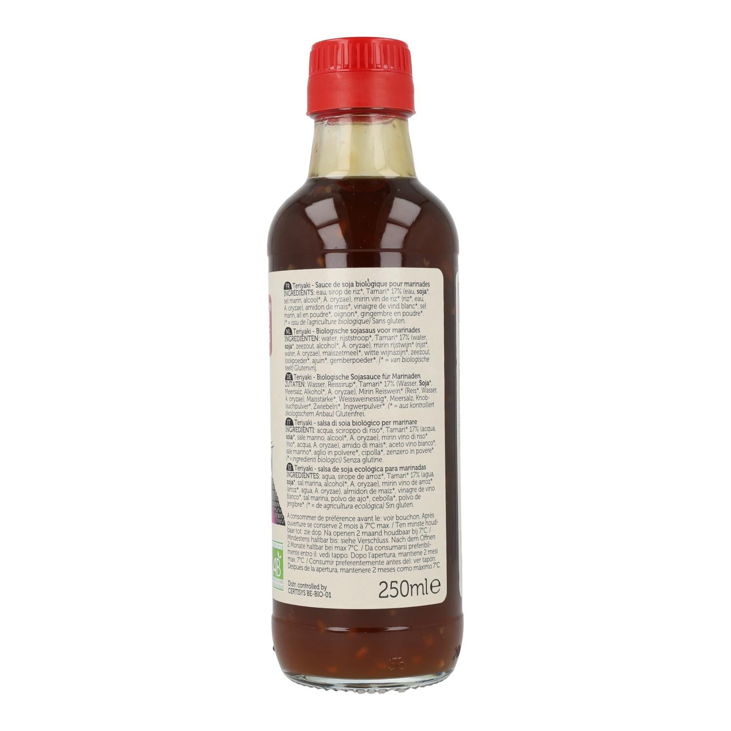 Ingredientes: água, xarope de arroz*, molho de soja Tamari* 17% (água, soja*, sal marinho, álcool*, A. oryzae), vinho de arroz mirin* (arroz*, água, A. oryzae), amido de milho*, vinagre de arroz*, sal marinho, alho*, cebola*, gengibre*.