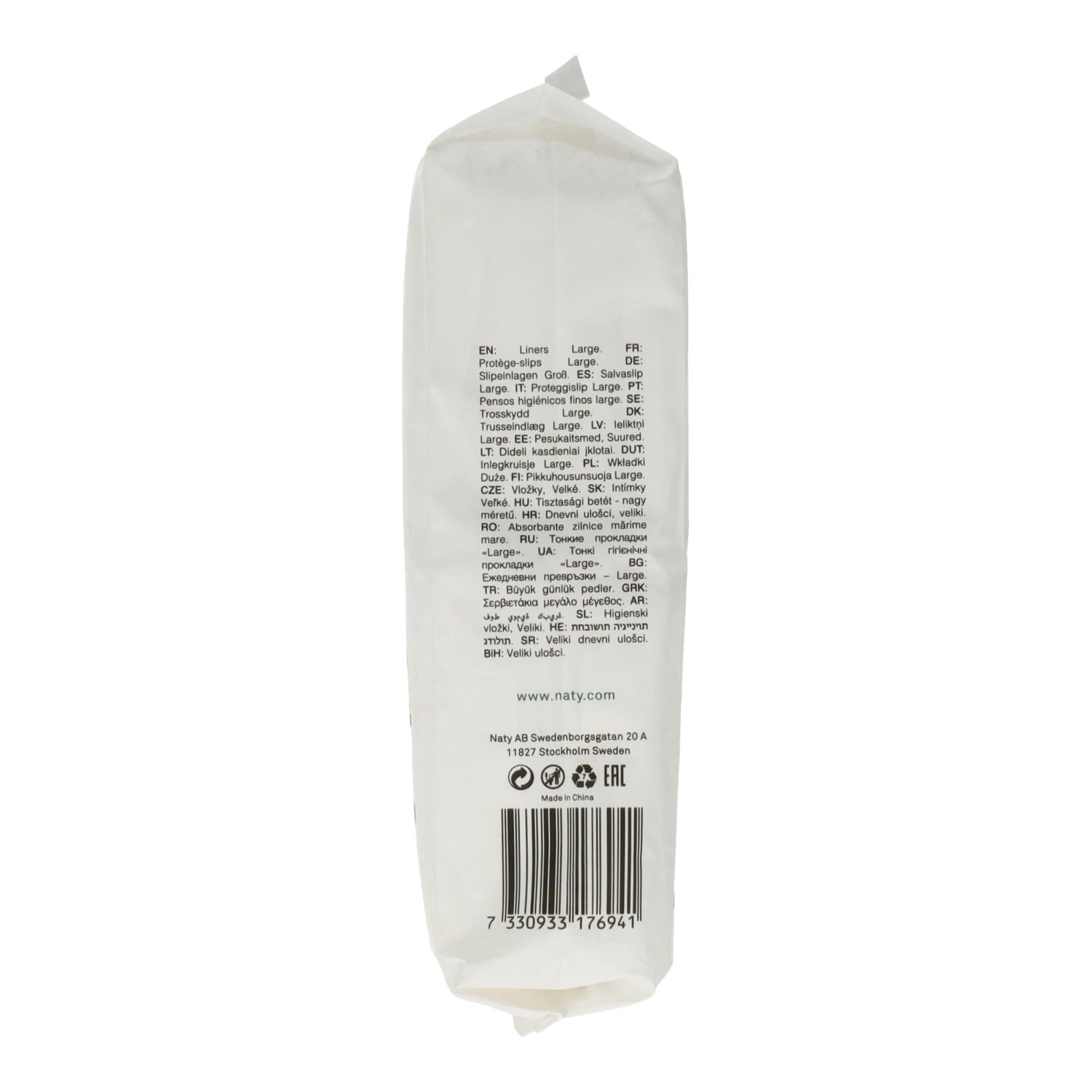 Fatos com materiais compostáveis e de origem vegetal. Protetores diários Eco da Naty têm o mesmo aspeto e funcionalidade dos protetores diários normal, mas a experiência de usar protetores diários sem plástico à base de petróleo e sem químicos nocivos é muito mais natural e Respirável. Os nossos protetores diários ultrafinos absorvem até 10 vezes o seu peso para que se sinta seco durante mais tempo.